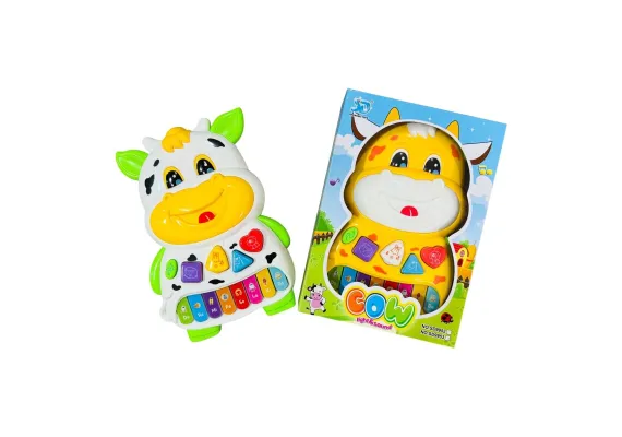 Pianina muzicala pentru bebelusi si copii mici, vacuta vesela, multicolor, 23×17cm,