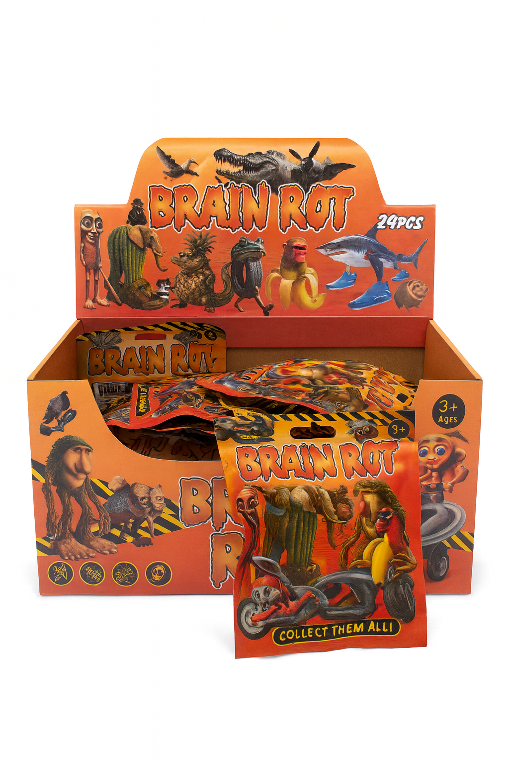 Un set colorat și atrăgător format din 24 de plicuri surpriză, fiecare conținând câte o figurină cu creaturi amuzante, bizare și distractive. Modelele sunt variate, cu designuri haioase și expresive, ideale pentru copii, colecționari sau pentru a fi vândute individual.