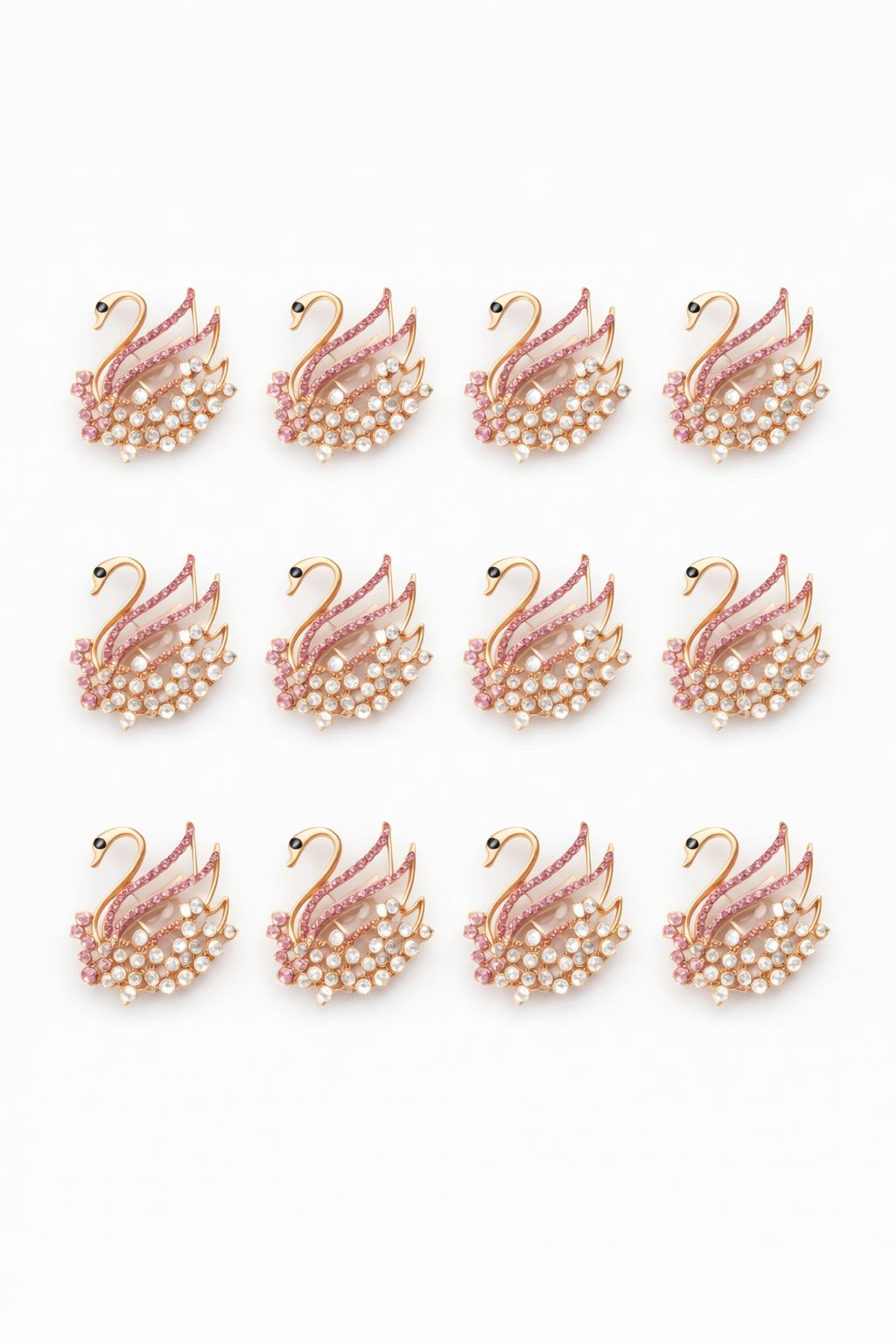 Sarbatoresc frumusetea care renaste cu acest set 12 brose Martisor, 5 cm, Lebada. Silueta eleganta a lebedei este transpusa intr-o brosa metalica finisata cu grija, ce emana distinctie si rafinament pe orice piesa vestimentara.