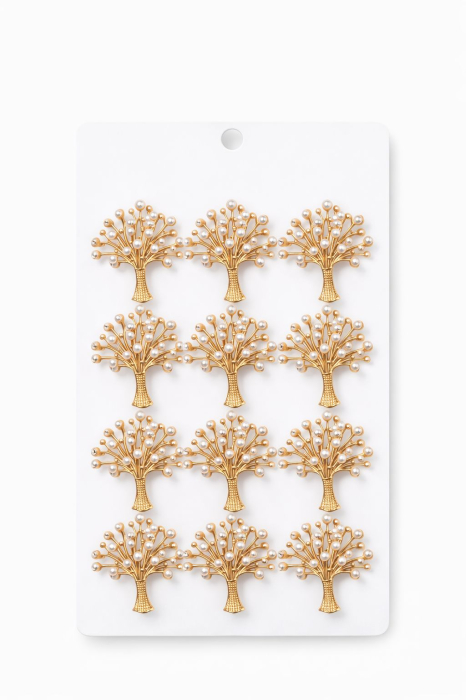Sarbatoresc conexiunea cu natura si forta vietii alegand acest set 12 brose Martisor, 17x10 cm, Copacul vietii. Acest simbol ancestral, reprezentand cresterea, stabilitatea si intelepciunea, este transpus intr-o forma eleganta de brosa, perfecta pentru a fi purtata ca accesoriu cu semnificatie in zilele de primavara.
