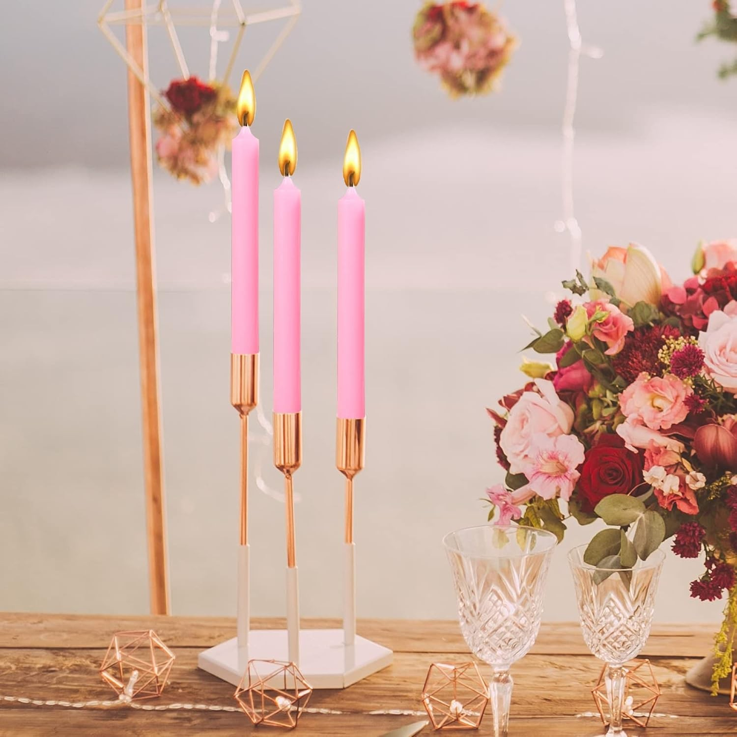 Aceste lumânări elegante sunt ideale pentru cine romantice, decorarea mesei sau evenimente speciale. Cu un design simplu și sofisticat, oferă o lumină caldă și plăcută, fără miros, fum sau picurare.