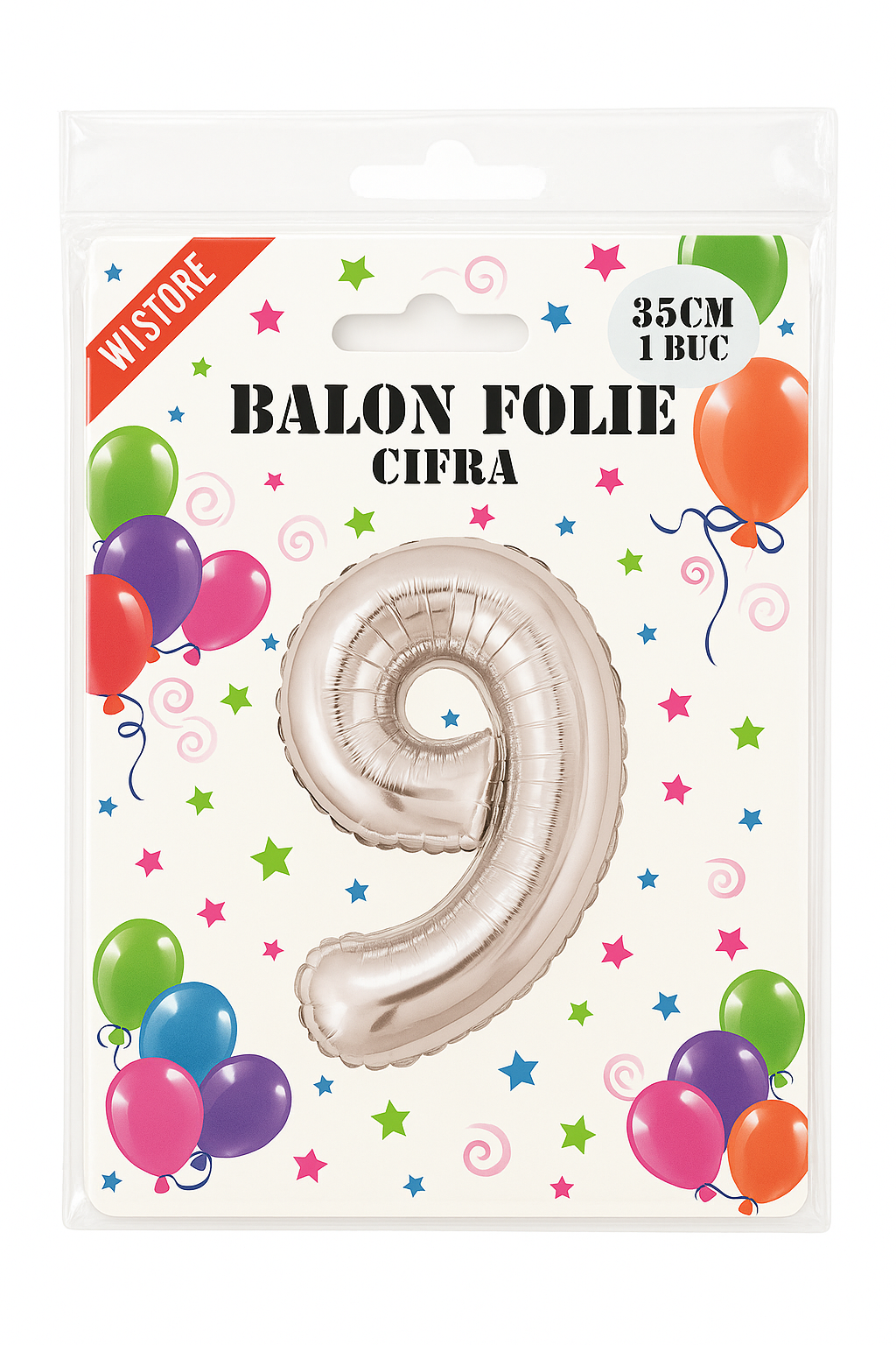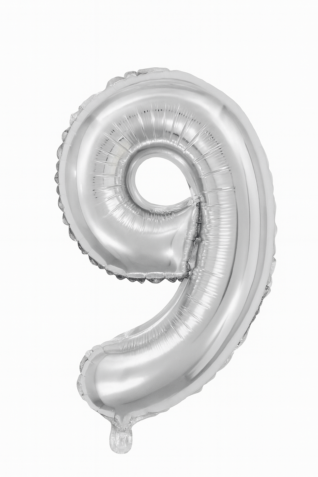 Balon folie cifra 9 argintiu, 35 cm, pentru aniversari si petreceri, 1 buc