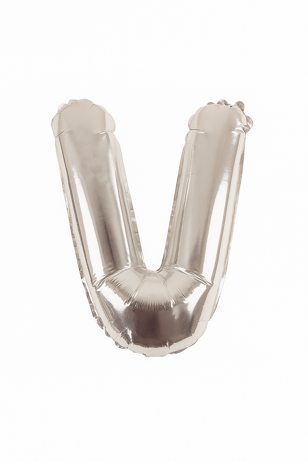 Balon folie litera V, culoare argintiu metalizat, perfect pentru decorarea aniversarilor, petrecerilor tematice, evenimentelor pentru copii sau adulti. Aspectul lucios si elegant adauga un plus de stil oricarui decor, fiind ideal pentru a forma nume, mesaje sau initiale personalizate.