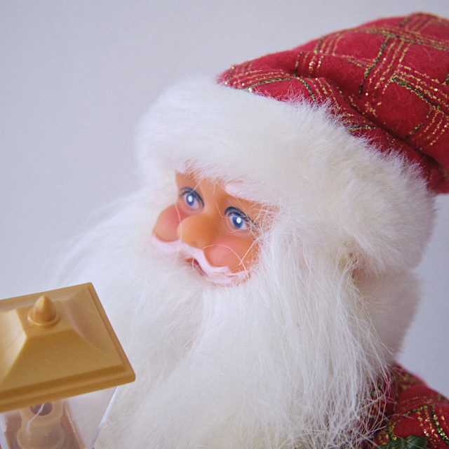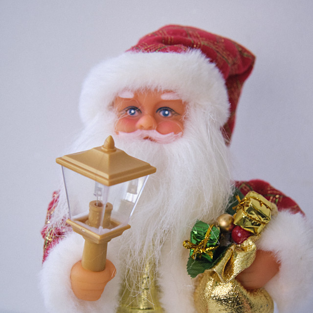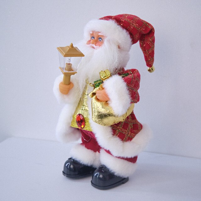 Mos Craciun decorativ 30 cm cu sac auriu si felinar