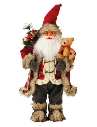 Mos Craciun decorativ 45 cm rustic cu ursulet si sac cu cadouri