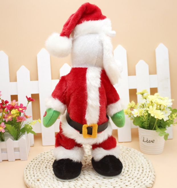 Această figură Moș Crăciun animată înălțime de 35 cm redă melodii de Crăciun, dansează sincronizat și cântă la un. Funcționează pe 4 baterii AA (neincluse) și este realizată din pluș moale și detalii decorative elegante. Livrat sub forma unei jucării muzicale de interior.