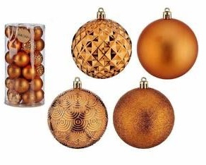 Set 34 globuri de Craciun pentru brad – 26x18x18cm, nuanta cupru, finisaj lucios/satinat/ sclipici