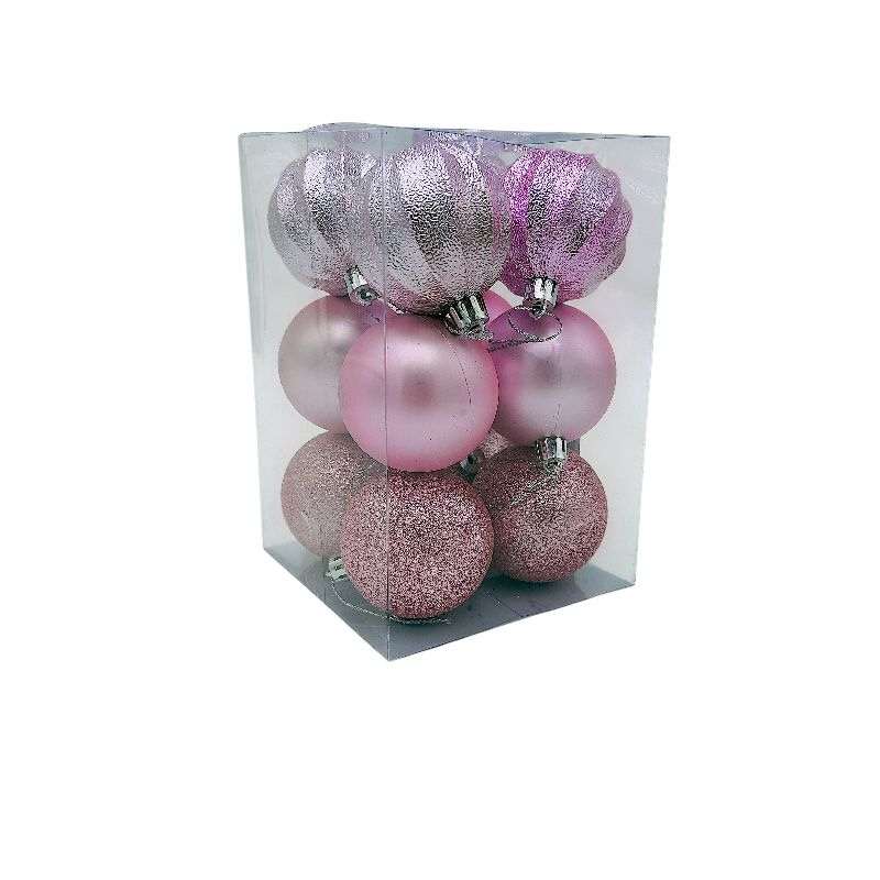 Set 12 globuri de Crăciun – roz delicat, finisaj mat/lucios/sclipici(en-gros)