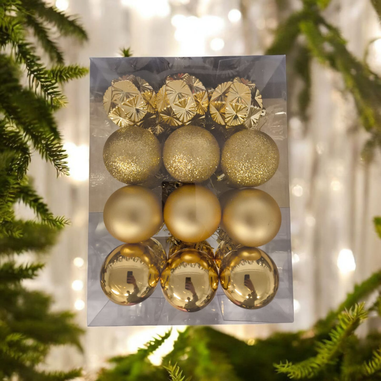 Set 24 globuri de Crăciun – auriu, finisaj mat/lucios/sclipici(en-gros)