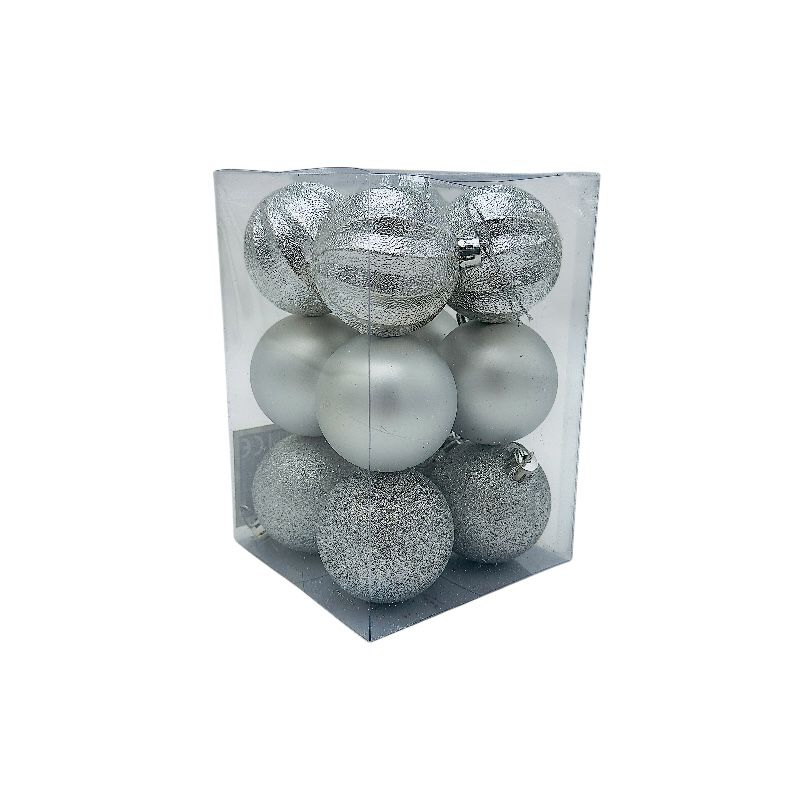 Set 12 globuri de Crăciun – argintiu, finisaj mat/lucios/sclipici(en-gros)