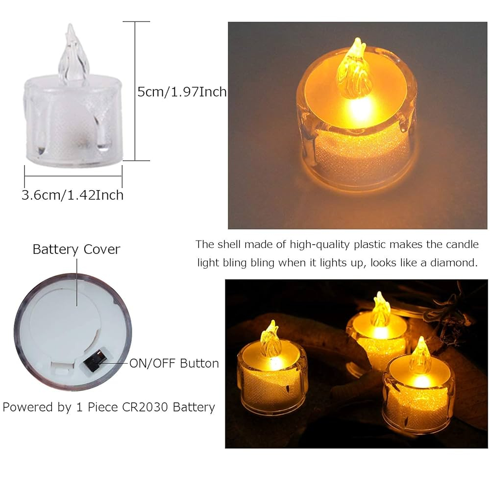 Set 24 lumanari LED 5 cm, efect flacara, cilindru acrilic transparent – intrerupator la baza