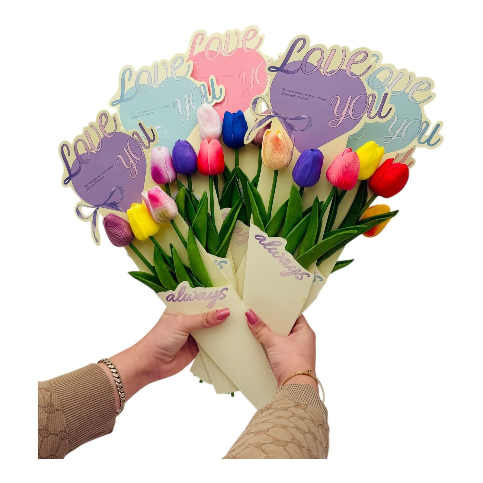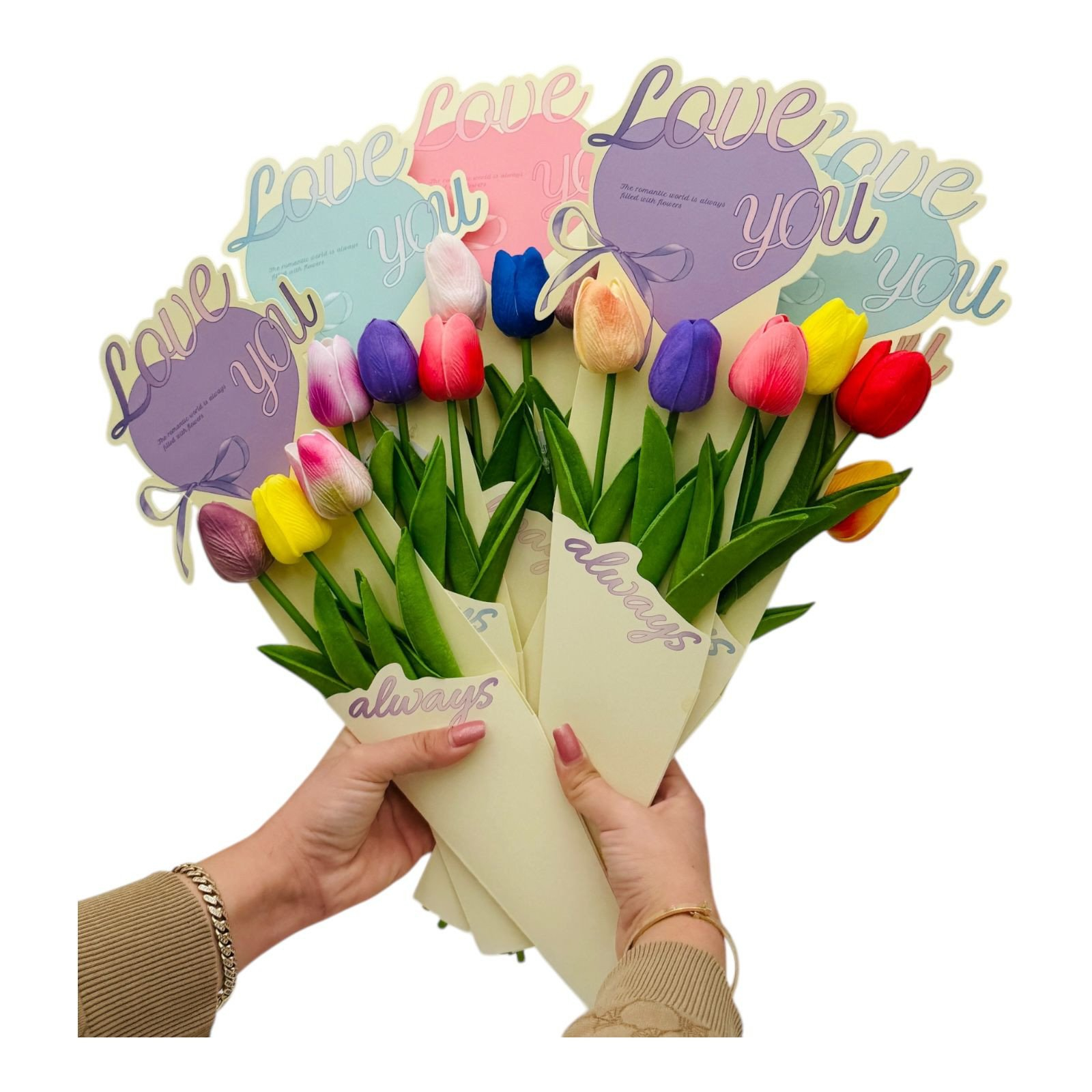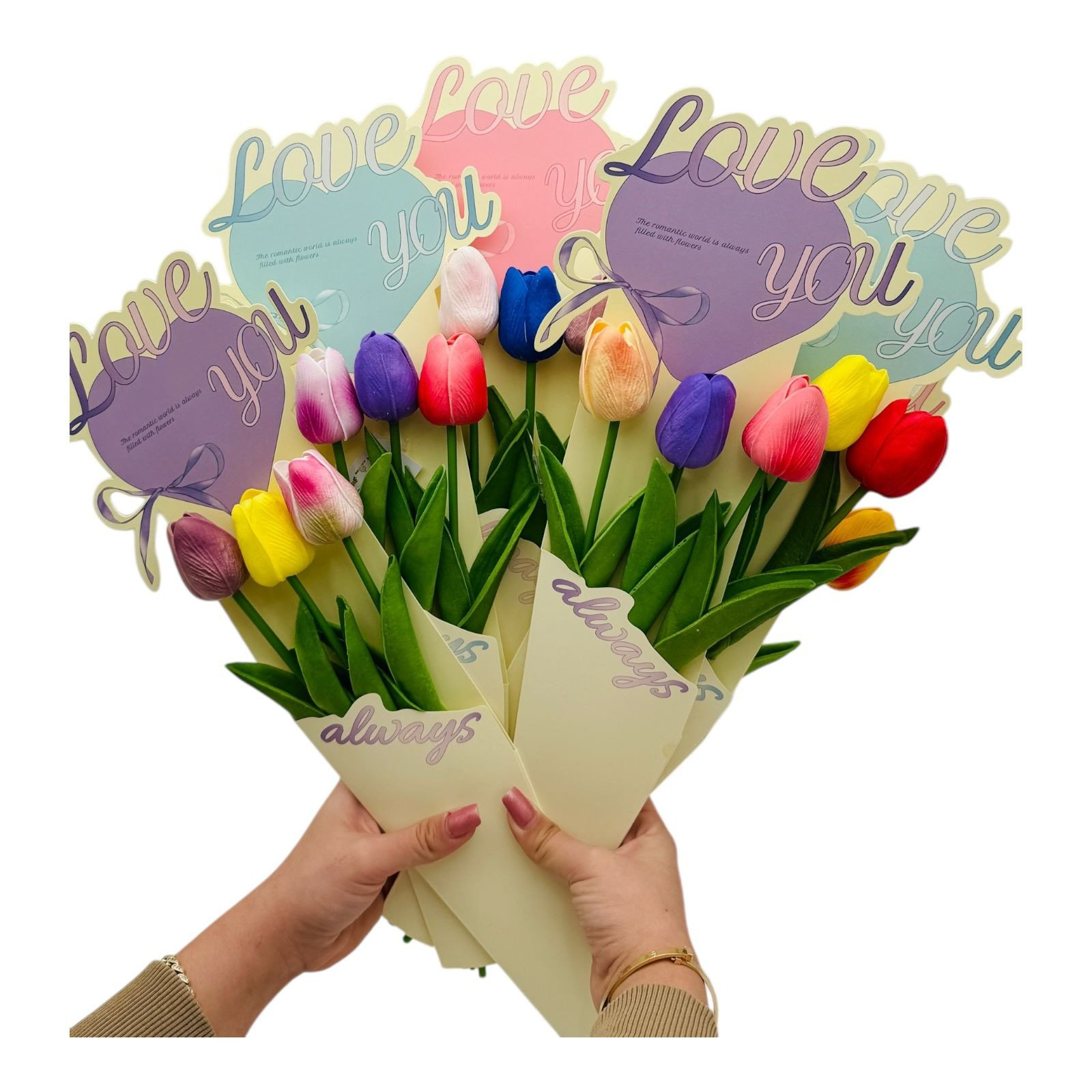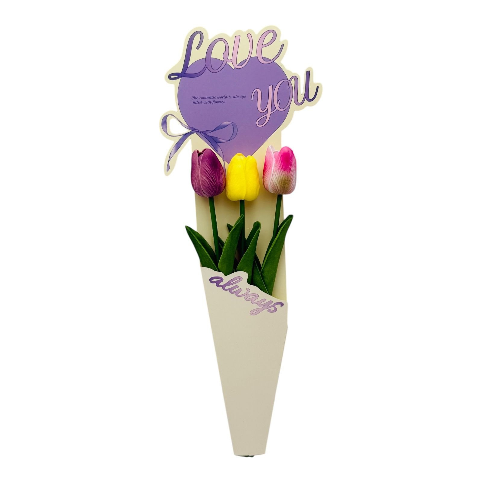 Aranjament Deosebit cu 3 Lalele din Silicon Soft Touch – 45 cm, Disponibil Adăugați un strop de primăvară oricărui decor cu acest aranjament elegant format din trei lalele din silicon "soft touch". Florile sunt realizate cu o atenție deosebită la detalii, oferind un aspect și o textură autentică, similară cu cea a lalelelor naturale. Disponibile în culori vibrante și diverse combinații, acest set este ideal pentru a aduce o notă de prospețime și stil în orice încăpere.Fiecare aranjament are o lungime de 45 cm și este însoțit de un ambalaj delicat cu mesaj de dragoste, ceea ce îl face perfect pentru cadouri sau pentru a înfrumuseța orice eveniment sau locație.Caracteristici:Material: Silicon de înaltă calitate (soft touch)Înălțime: 45 cmCulori variate: roz, albastru, alb, galben, roșu, violetAmbalaj modern cu mesaj „Love You”Avantaje:Textură realistă și aspect naturalIdeal pentru decoruri interioare sau evenimente specialeRezistent în timp, fără necesitatea întrețineriiDisponibilitate : Perfect pentru florării, decoratori și organizatori de evenimente. Aduceți eleganța și frumusețea lalelelor în proiectele dvs. cu acest aranjament de calitate superioară!