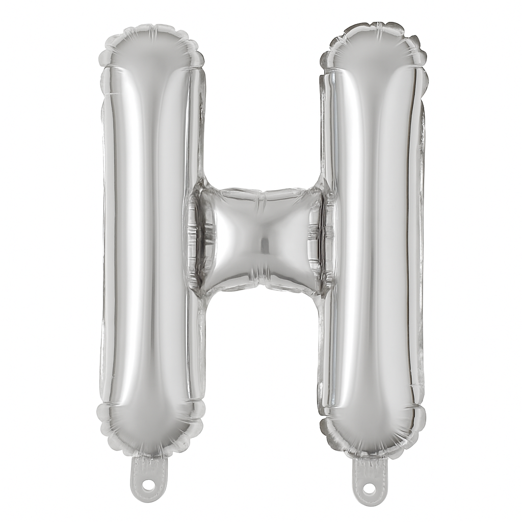Balon folie litera H, culoare argintiu metalizat, dimensiune 35 cm, ideal pentru decorarea petrecerilor si aniversarilor. Este perfect pentru a crea mesaje personalizate, nume, initiale sau sloganuri impreuna cu alte litere si cifre din aceeasi colectie.