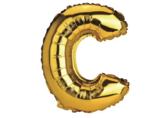 Balonul litera C din folie metalizata aurie, cu o dimensiune de 35 cm, este perfect pentru a adauga un plus de originalitate decorurilor de petrecere. Cu un aspect stralucitor si un design elegant, este ideal pentru evenimente precum aniversari, botezuri sau nunti. Poate fi combinat cu alte litere pentru a crea mesaje personalizate si este usor de integrat in orice tematica festiva.