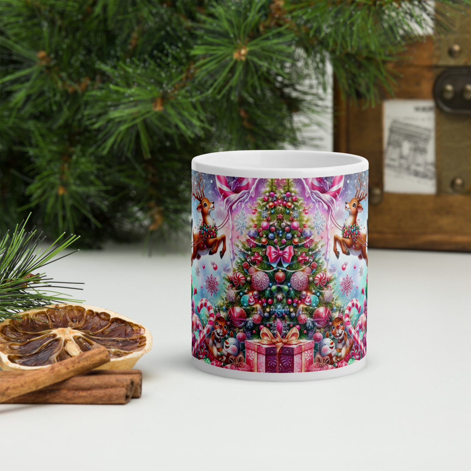 Cana din ceramică de 11 oz / 330 ml aduce o notă festivă oricărei pauze de cafea. Finisajul lucios, marginea confortabilă și mânerul ergonomic asigură o experiență plăcută de utilizare în sezonul rece.