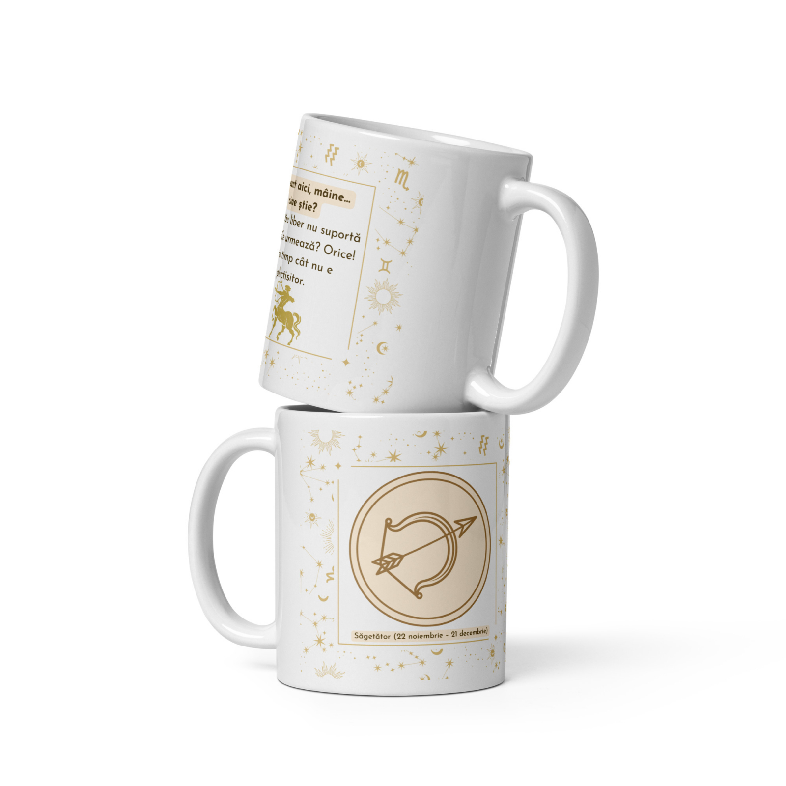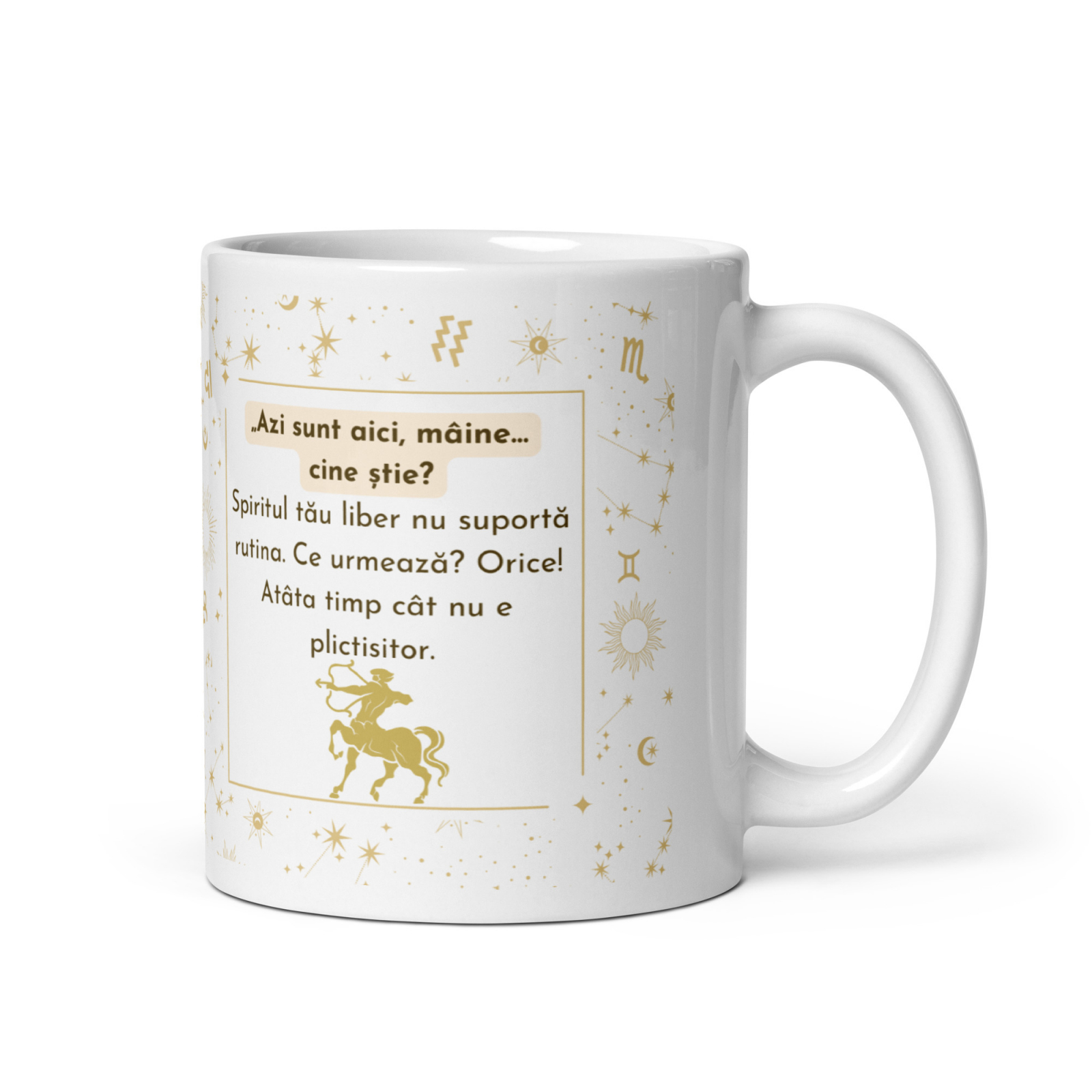 Un cadou ideal pentru cei nascuti sub semnul energic si curios al Sagetatorului! Cu un design inspirat de aceasta zodie de foc, cana reflecta dorinta lor de libertate, spiritul aventurier si optimismul debordant.Dimensiuni:Capacitate: 11 oz (~330 ml)Inaltime: 9.5 cm (~3.74 inch)Circumferinta: 25.5 cm (~10 inch)Caracteristici:Material: Ceramica premium, rezistentaDesign imprimat de inalta calitate, durabil in timpPotrivita pentru cuptorul cu microunde si masina de spalat vaseAmbalata corespunzator pentru transport in sigurantaVanzare – Preturi avantajoase pentru revanzatoriAceasta cana se comercializeaza doar in cantitati mari, fiind destinata magazinelor de cadouri si altor comercianti.Comanda acum si ofera clientilor tai un produs perfect pentru nativii Sagetator!