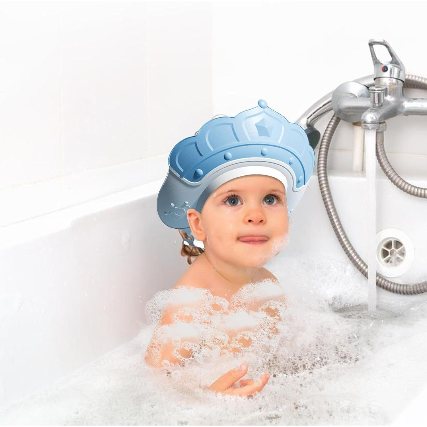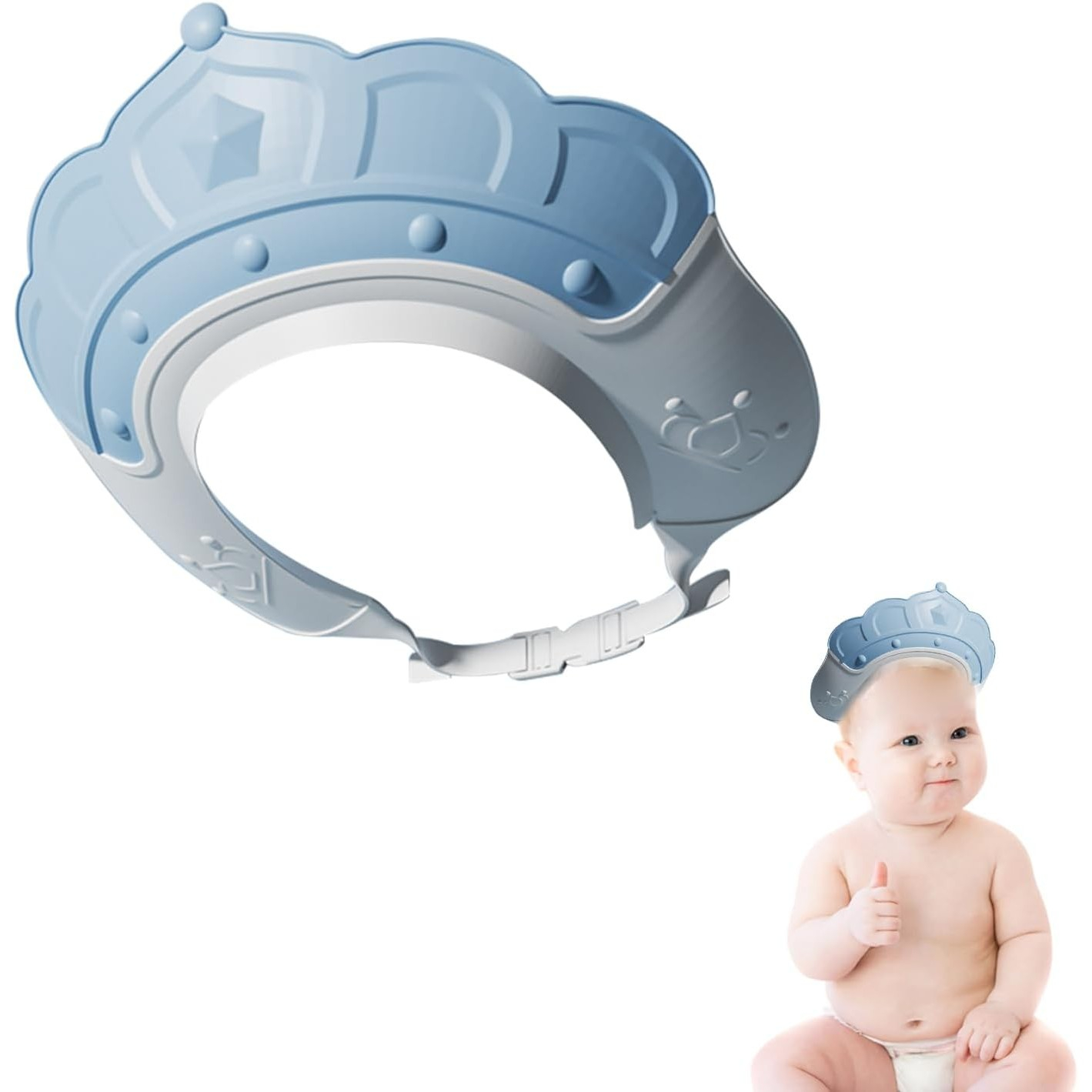 Casca de Dus, , Previne Scurgerea Apei si Samponului pe Fata, 0-12 Ani, Ajustabila, din TPE+PP, 20 x 23 cm, Model Coroana, Albastru