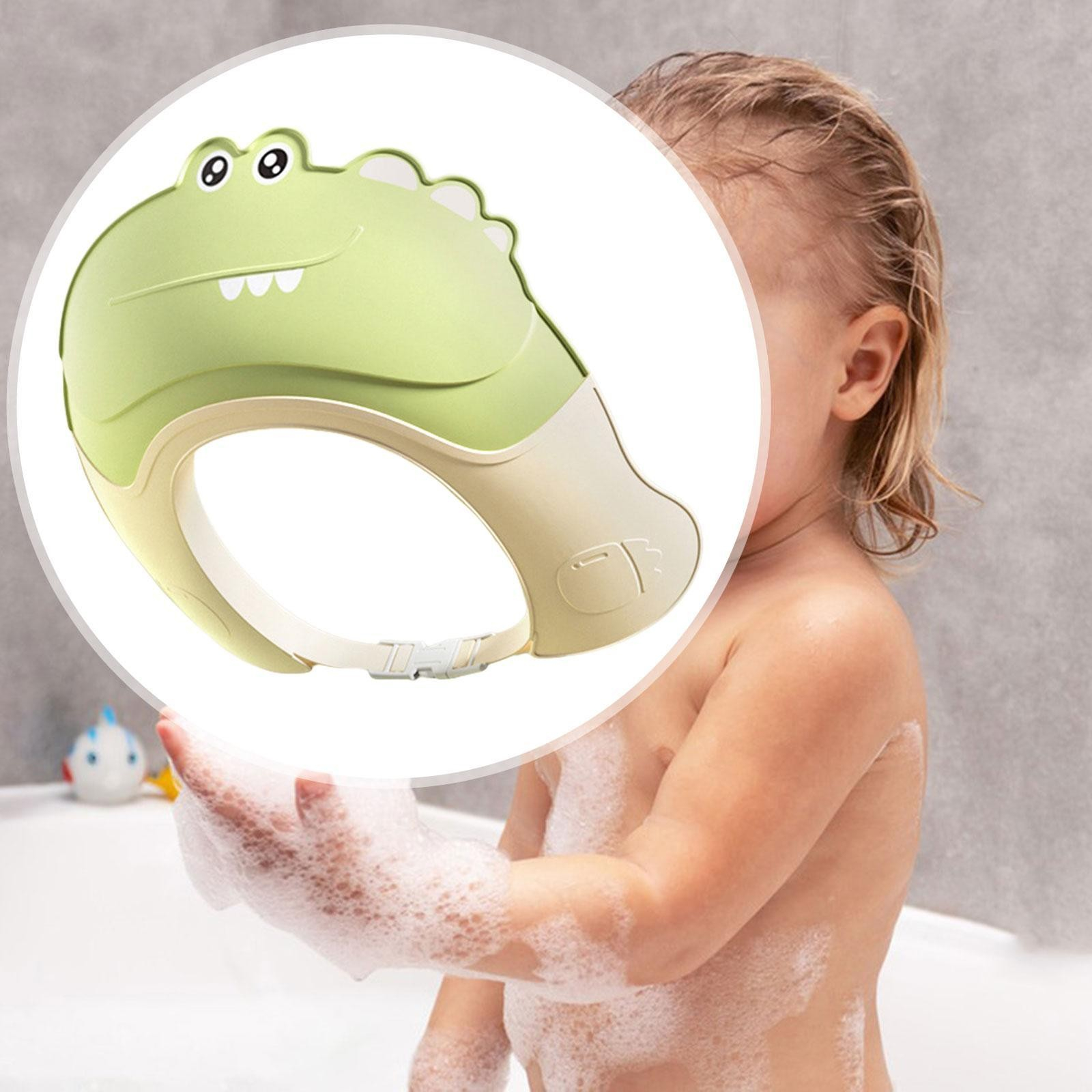 Casca de Dus, , Previne Scurgerea Apei si Samponului pe Fata, 0-12 Ani, Ajustabila, din TPE+PP, 20 x 23 cm, Model Crocodil, Verde