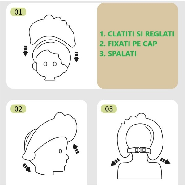 • Design ergonomic: Previne intrarea apei, șamponului sau săpunului în ochi, urechi și nas