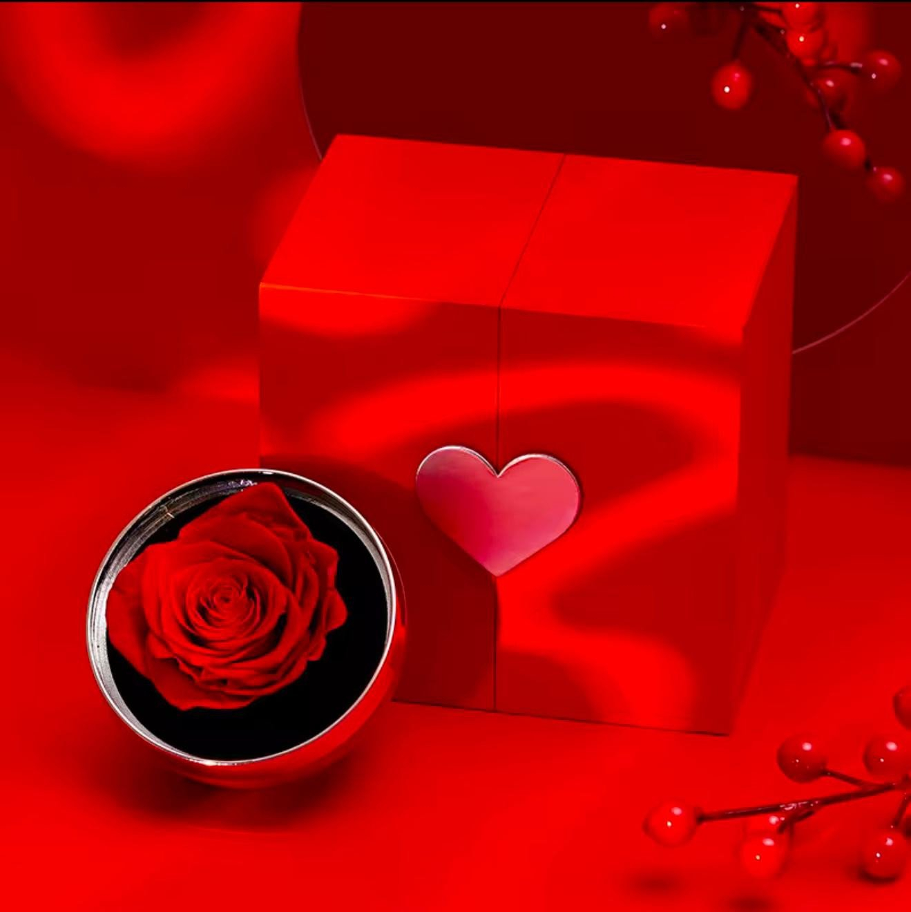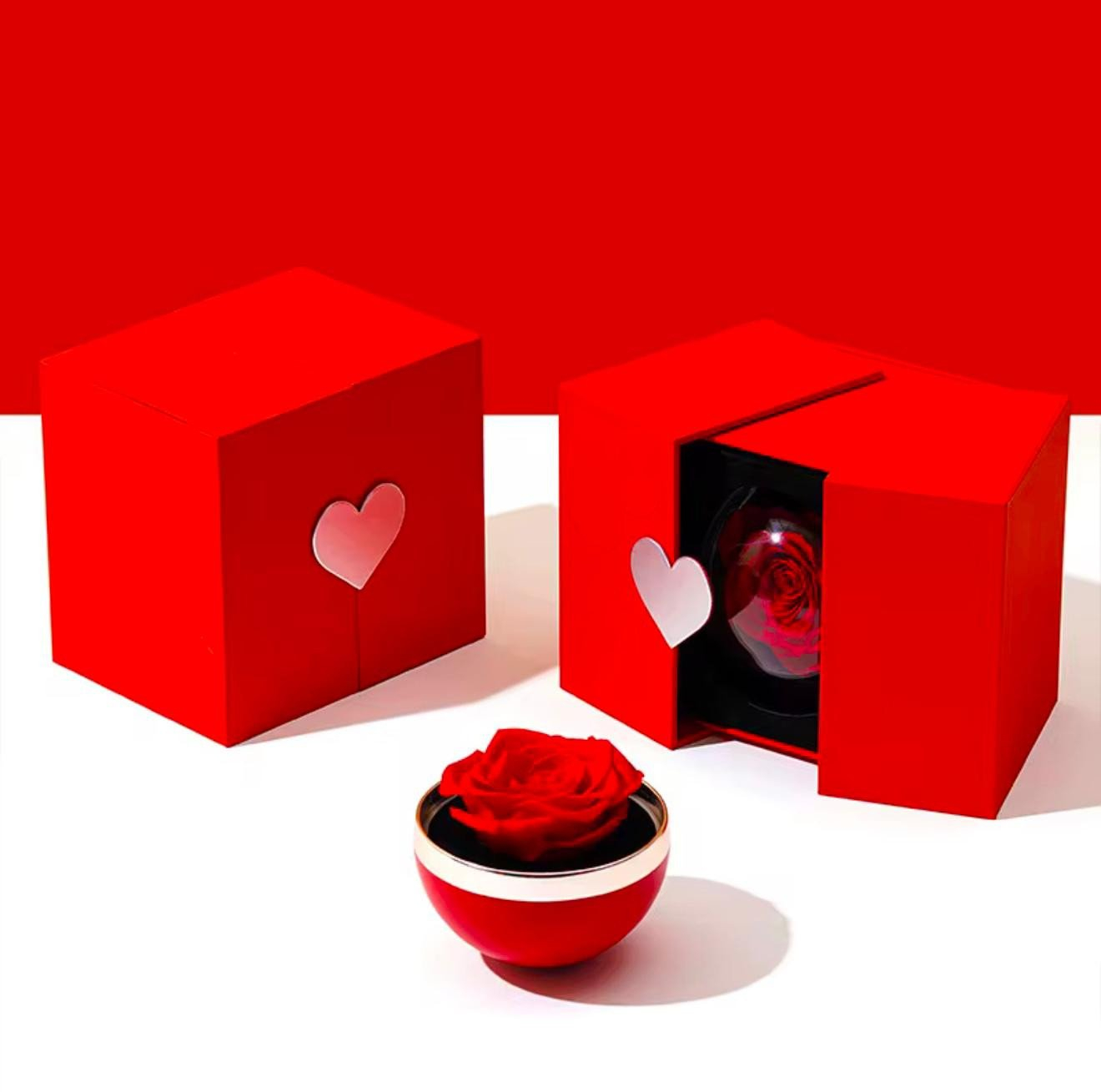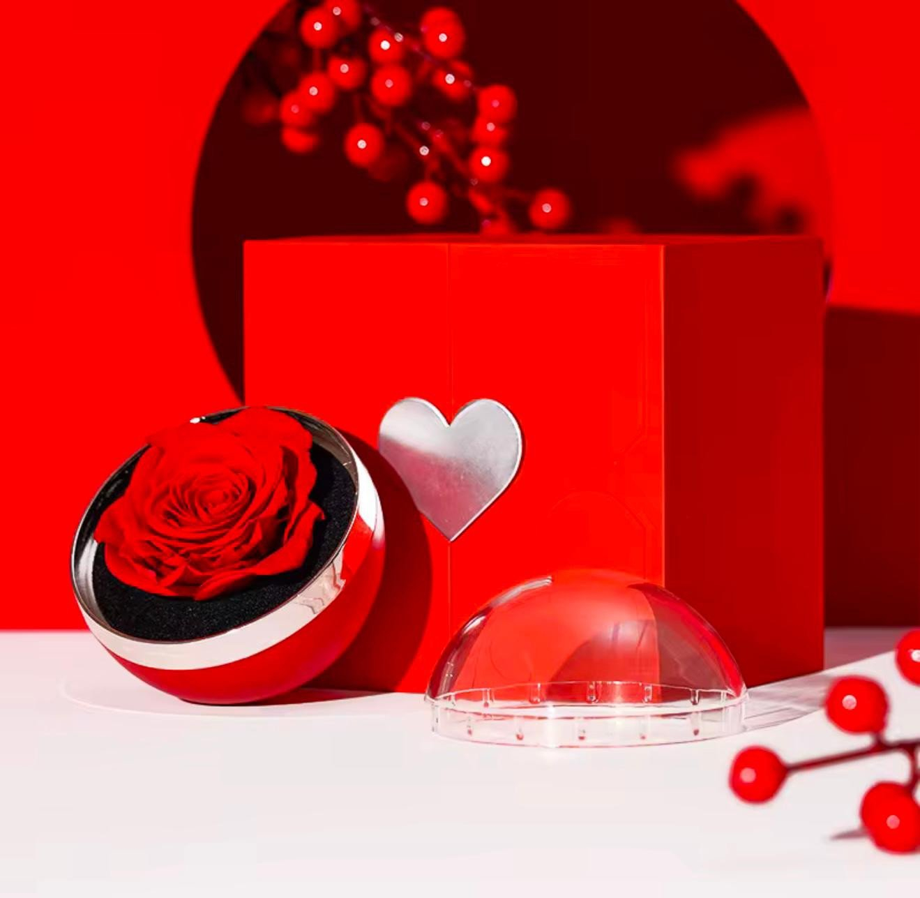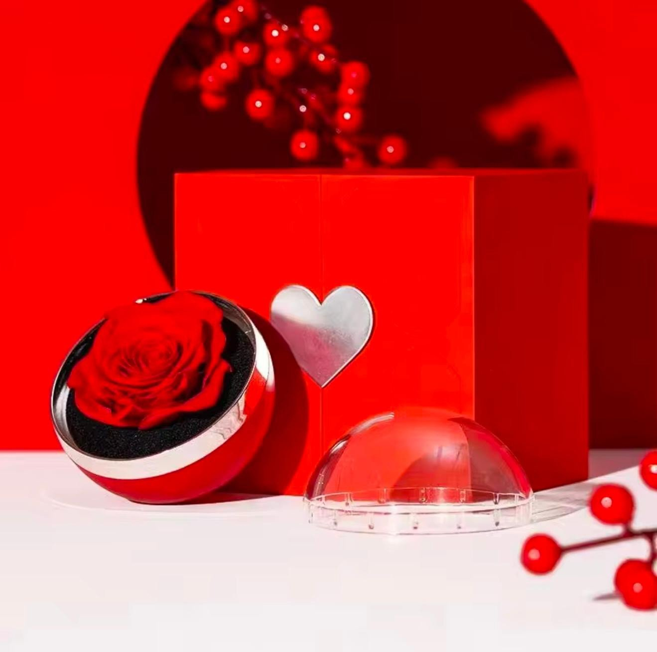 Caseta decorativă de lux în nuanțe vibrante de roșu este o alegere perfectă pentru un cadou memorabil. Acest produs se remarcă printr-un design compact (13×12.5×10 cm) și elegant, care combină estetica rafinată cu funcționalitatea.Caseta include un trandafir criogenat de o frumusețe atemporală, păstrat sub o cupolă transparentă, care oferă protecție și pune în valoare delicatețea florii. Procesul de criogenare permite ca acest trandafir să își păstreze aspectul proaspăt timp îndelungat, fără a necesita întreținere specială.Ambalajul este rafinat, decorat cu detalii simbolice precum o inimă strălucitoare, ceea ce subliniază tematica romantică a produsului. Designul compact și modern permite utilizarea casetei atât ca element decorativ, cât și ca spațiu pentru păstrarea micilor accesorii sau bijuterii.Acest produs este ideal pentru diverse ocazii speciale, cum ar fi aniversările, zilele de naștere, Valentine’s Day sau alte momente în care dorim să transmitem emoții și să lăsăm o impresie de neuitat."