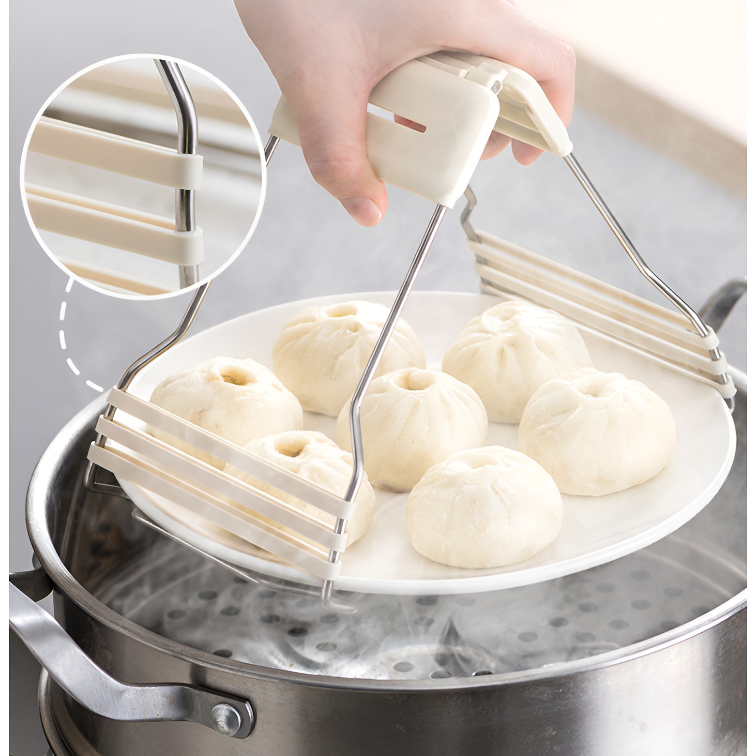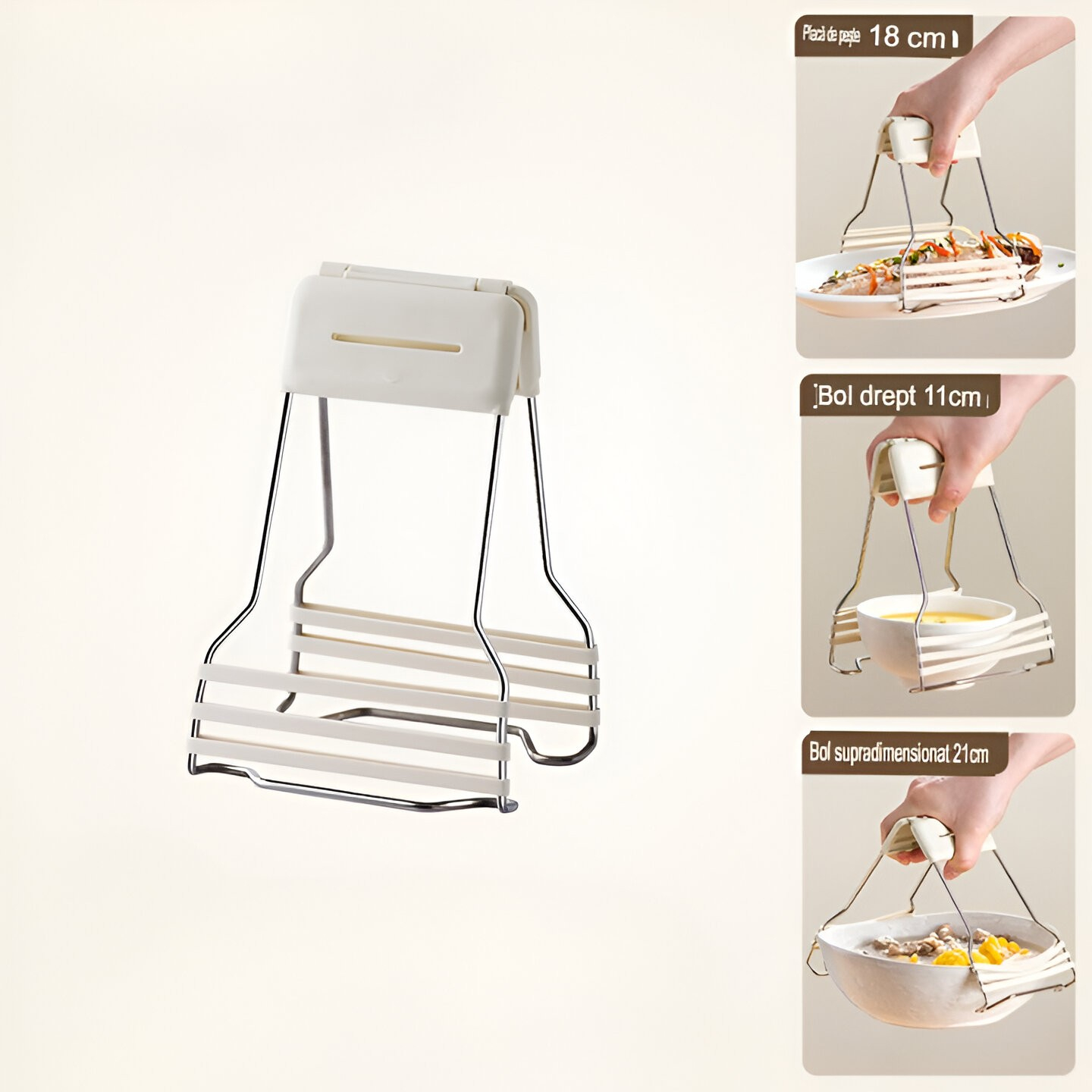 Instrument multifuncțional: poate fi folosit pentru a ține boluri, farfurii și pentru a preveni arsurile și alunecările.
