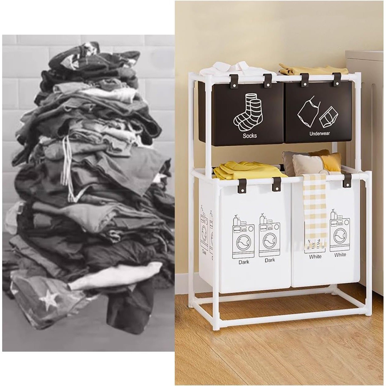 ✔ Stocare eficienta– cosurile permit sortarea hainelor dupa categorii