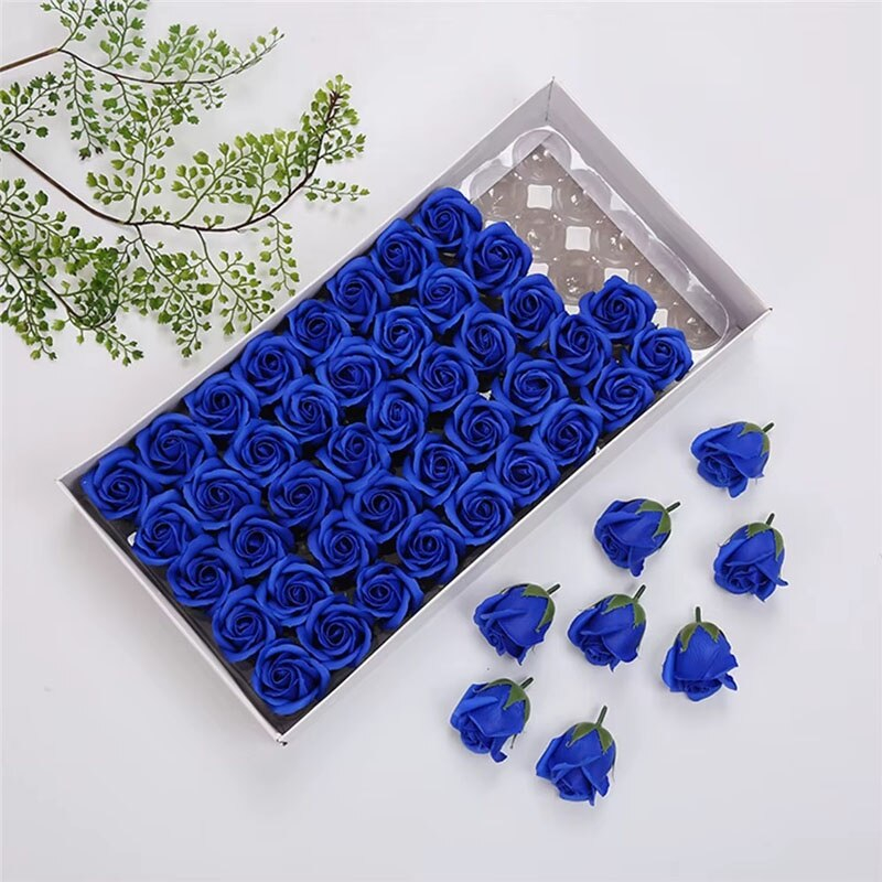 Cutie 50 trandafiri albastri din sapun, flori artificiale pentru cadou si decor