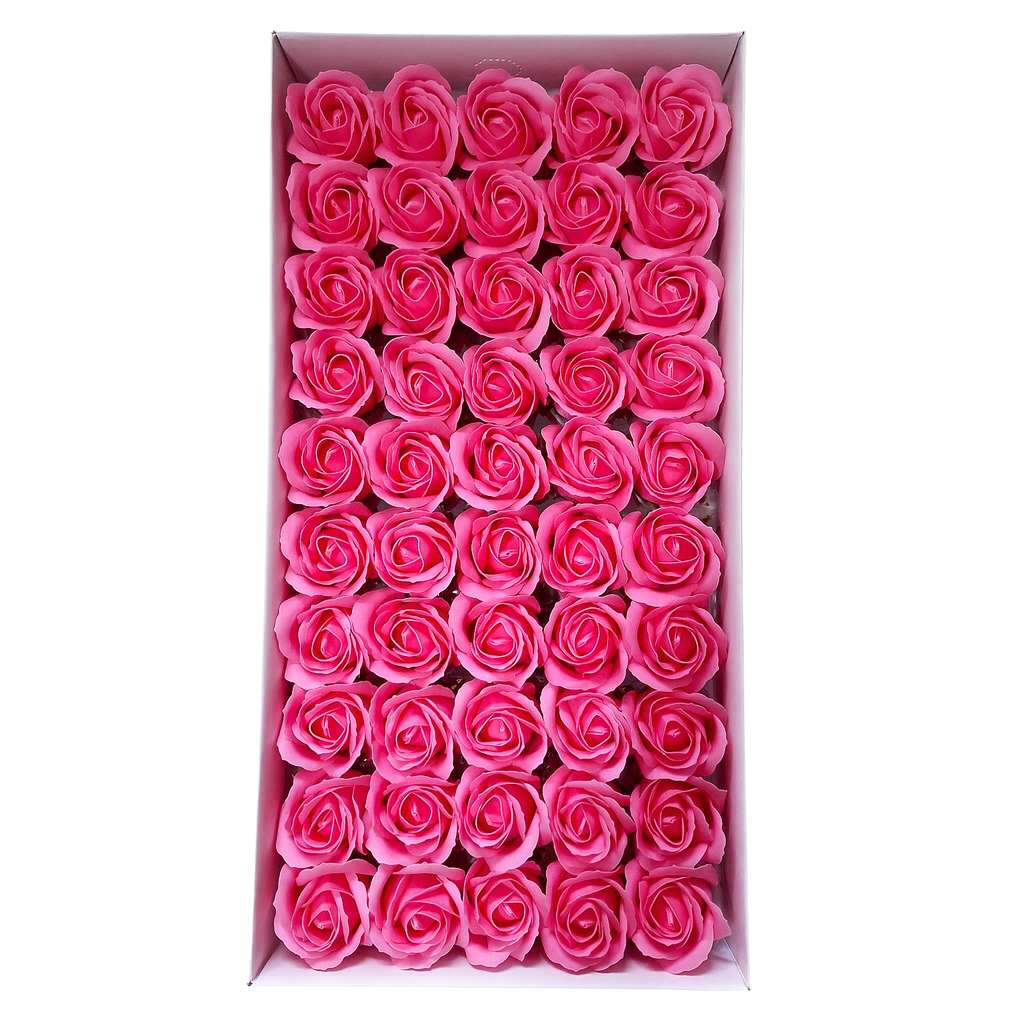 Cutie 50 trandafiri roz fucsia din sapun, flori artificiale pentru cadou si decor