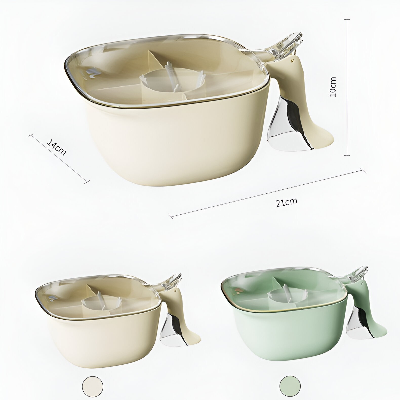Poate stoca diverse tipuri de condimente. Când trebuie să utilizați un anumit tip de condimente, trebuie doar să ridicați capacul. Este practic și păstrează aromele condimentelor.