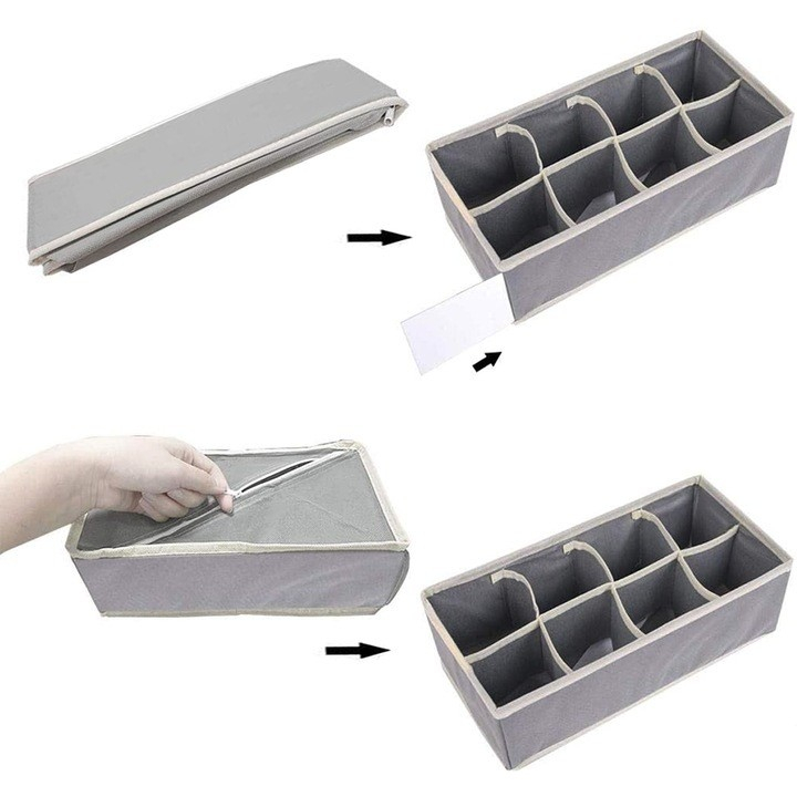 Cutie de Depozitare Flippy, pentru Lenjerie, Șosete și Sutiene, Material Textil, 8 Compartimente, 32 x 16 x 10 cm, Culoare Gri