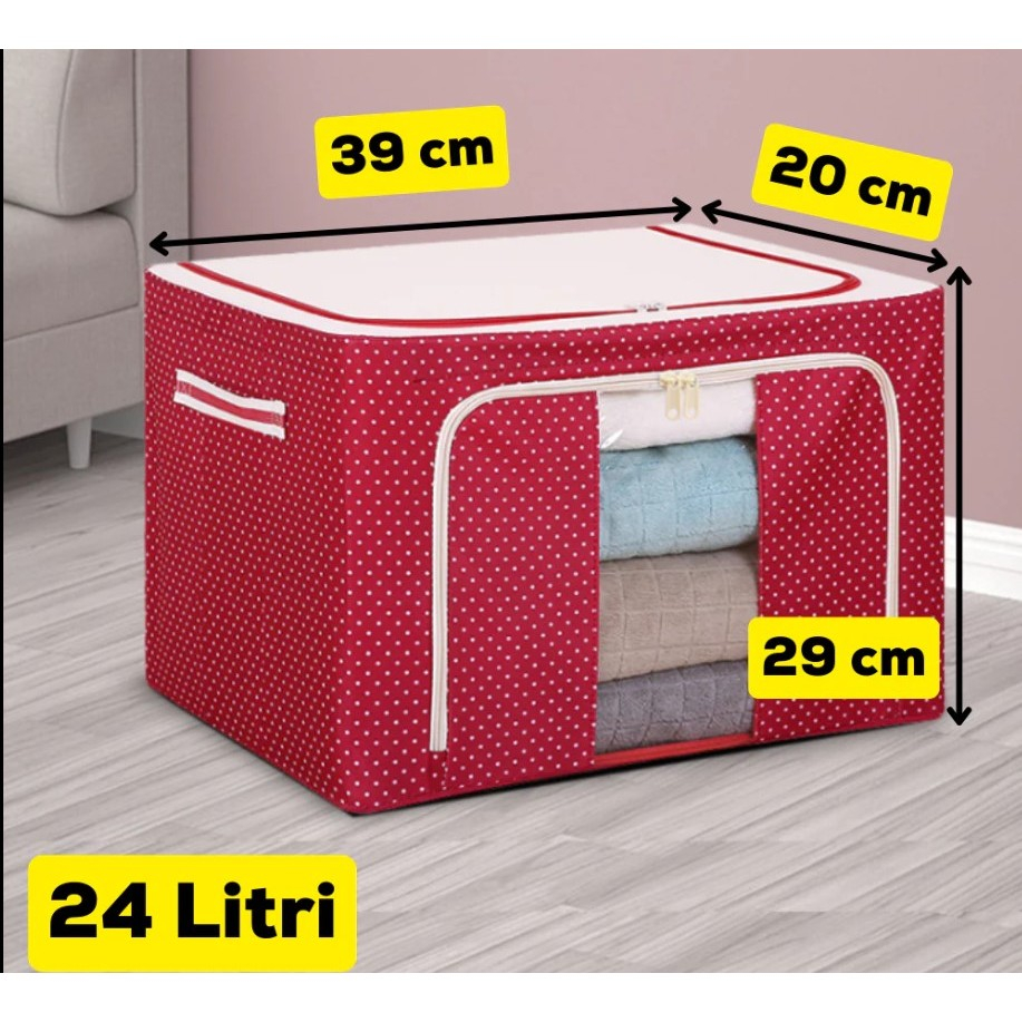 Informatii utile: Inaltime:20 cm, Latime:30 cm, Compozitie:Textil, Material:Textil, Lungime:40 cm, Tip:Cu fermoar, Capacitate:24 L, Detalii:Cutie de depozitare pliabila, Informatii suplimentare:Imprimeu buline, Culoare:Rosu, Numar bucati:1