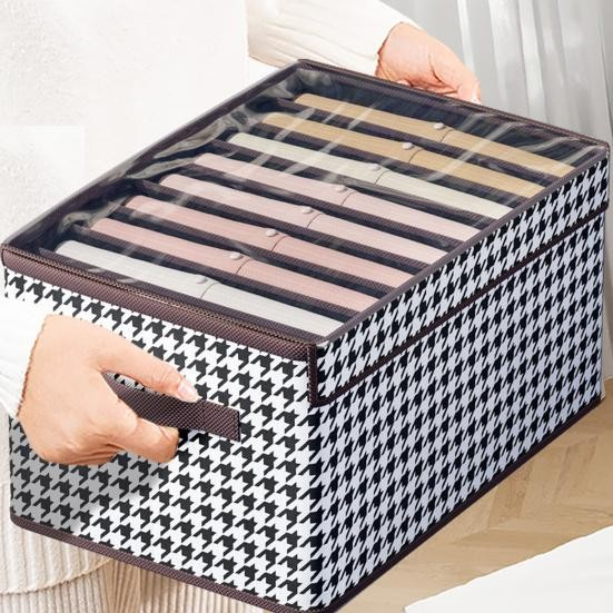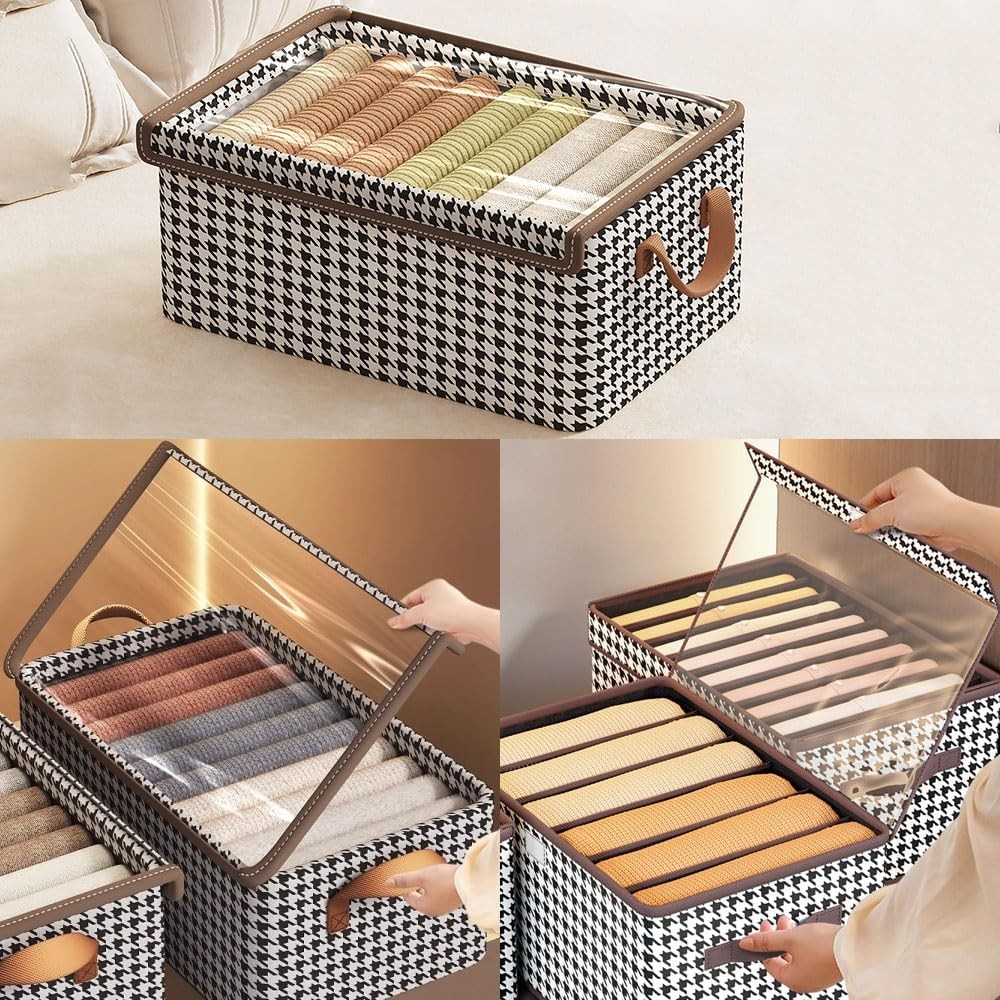 Păstrați-vă hainele și accesoriile organizate cu stil. Cutia de depozitare Flippy cu capac transparent și model în carouri este ideală pentru orice spațiu, oferind suprapunere ușoară și protecție împotriva umezelii și prafului.