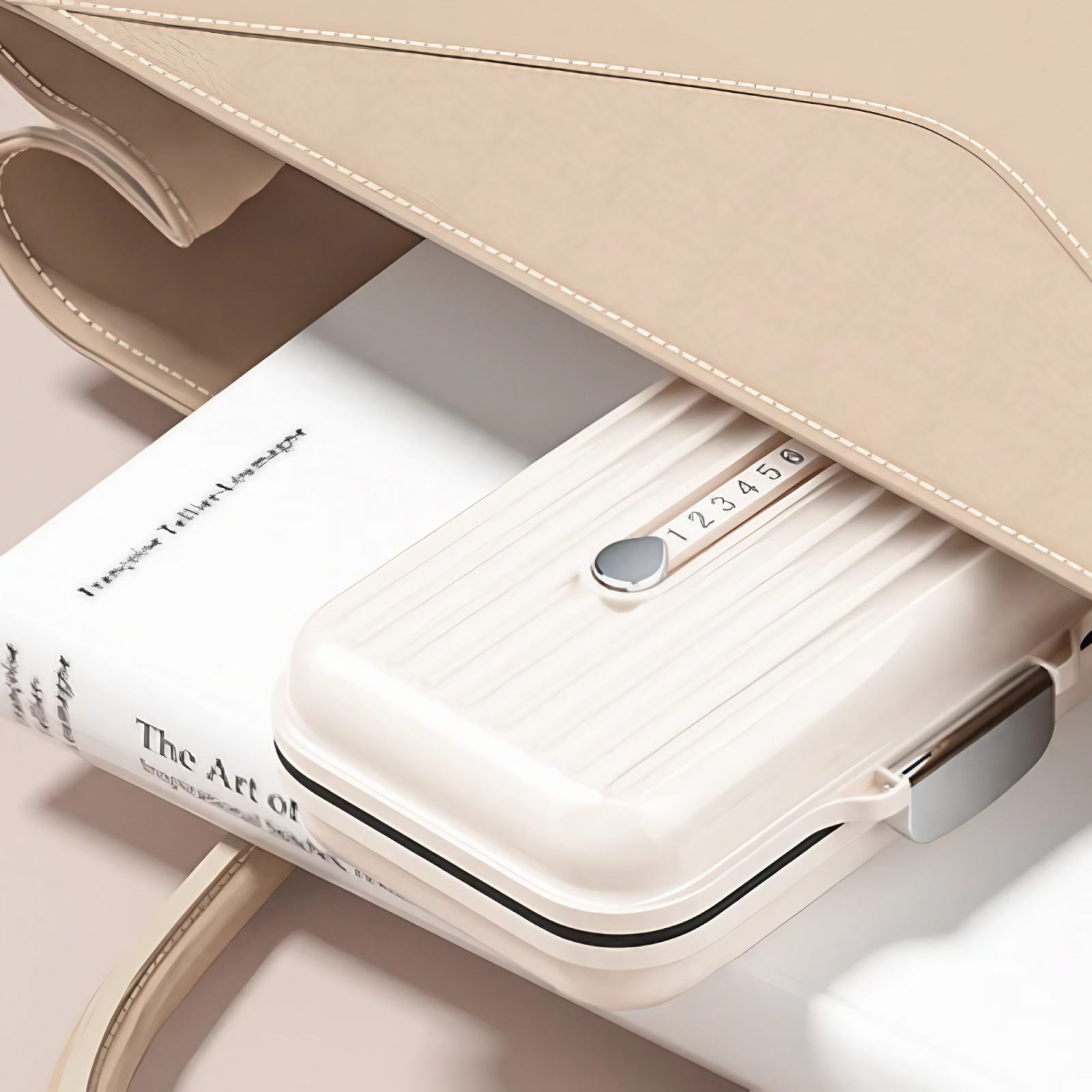 Exteriorul mat si usor texturat contribuie la o priza buna, iar sistemul de inchidere metalica asigura o etansare sigura, prevenind deschiderea accidentala. In plus, designul cu linii fine si forma rotunjita ii confera un aspect elegant, usor de integrat in orice context – de la poseta unei doamne, la servieta unui profesionist.