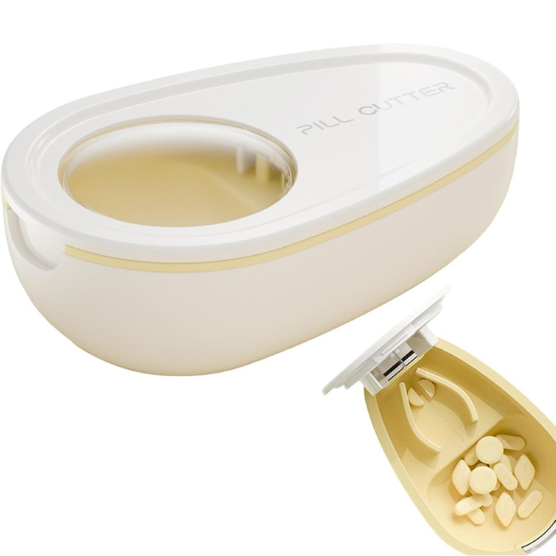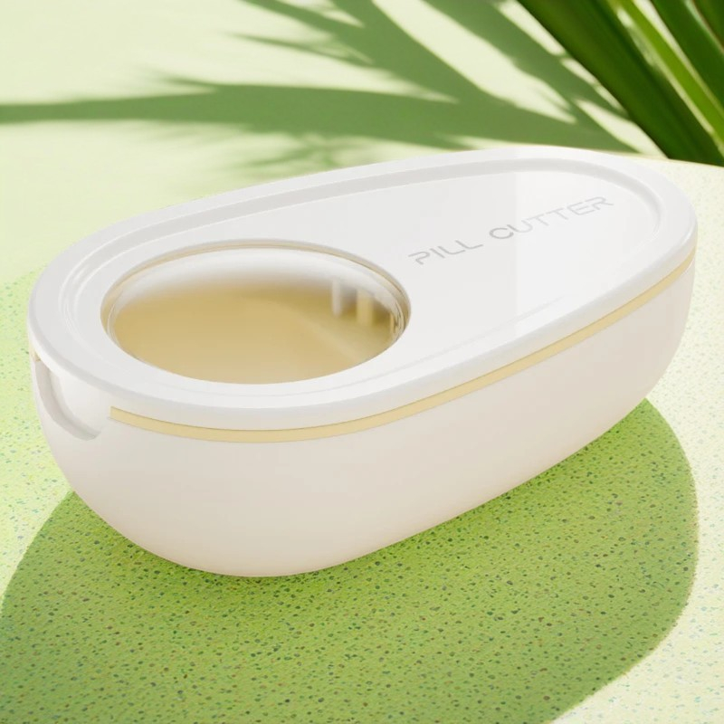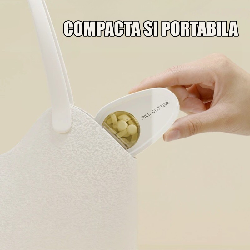 Lama incorporata este pozitionata astfel incat sa permita o taiere precisa si sigura, iar capacul transparent ofera vizibilitate in timpul utilizarii. Compartimentul interior permite pastrarea unui numar mic de pastile, suficient pentru consumul zilnic, fiind util atat pentru administrarea imediata, cat si pentru pregatirea dozelor in avans.