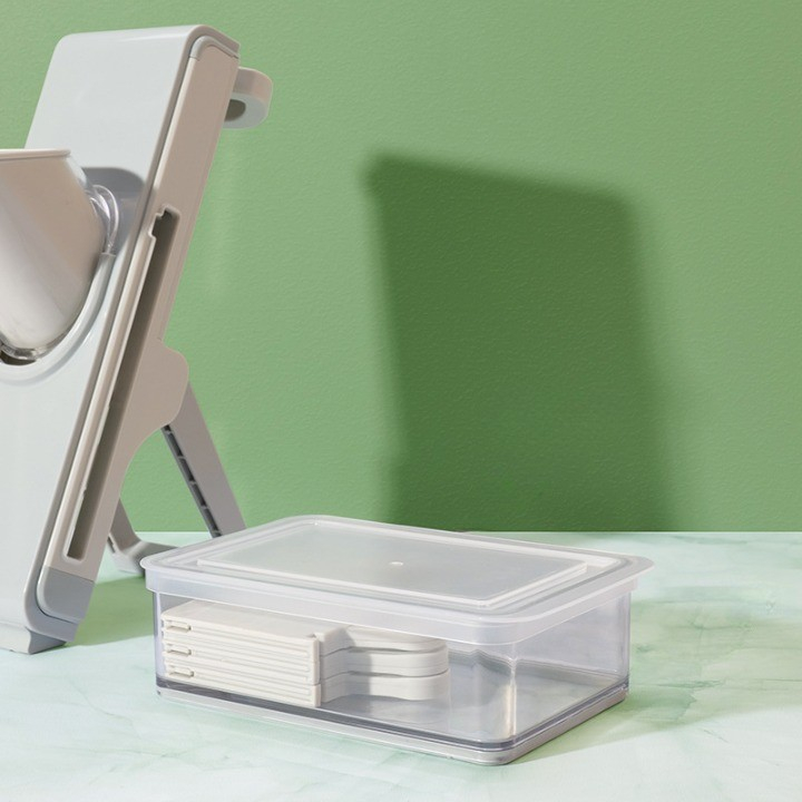 Tăieturi Diverse: Oferind multiple opțiuni de tăiere – de la felii subțiri la cuburi sau razături fine – acest feliator îți permite să experimentezi cu diverse texturi și forme de legume, aducând un plus de creativitate în preparatele tale.