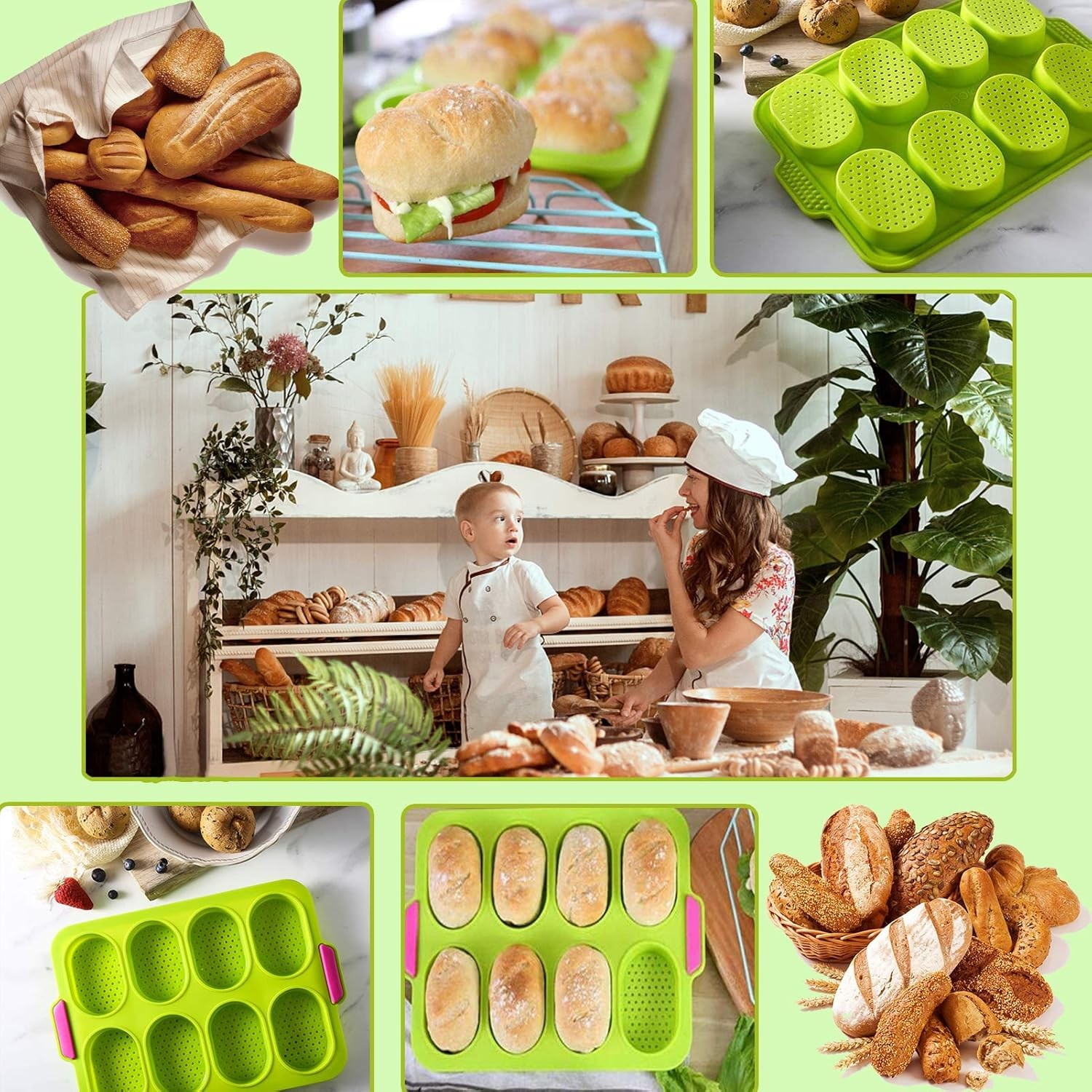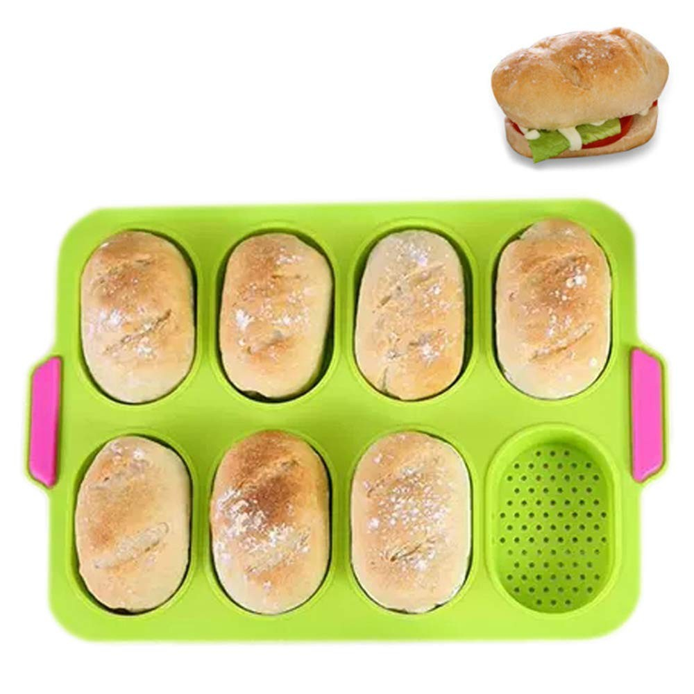 Forme de Silicon pentru Copt Flippy, 8 Forme Ovale, pentru Pâine și Prăjituri, 34.5 x 23.8 x 2.5 cm