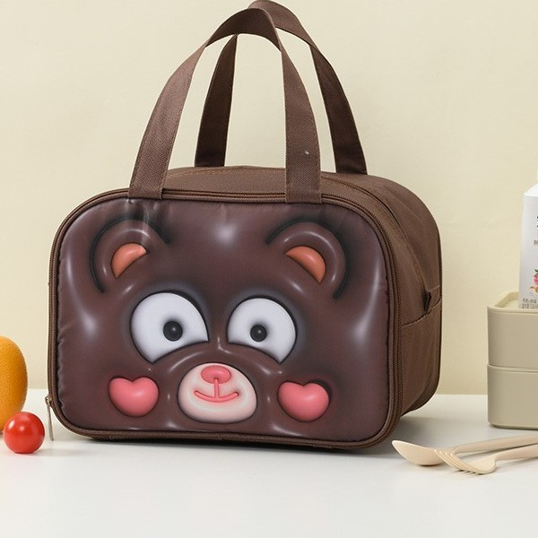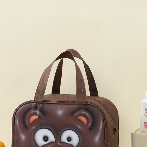 Geantă Frigorifică, , cu Desene Animat 3D, Portabilă pentru Copii, de Prânz, din Pânză Oxford, 27.5x18x20 cm, Model Ursulet, Maro