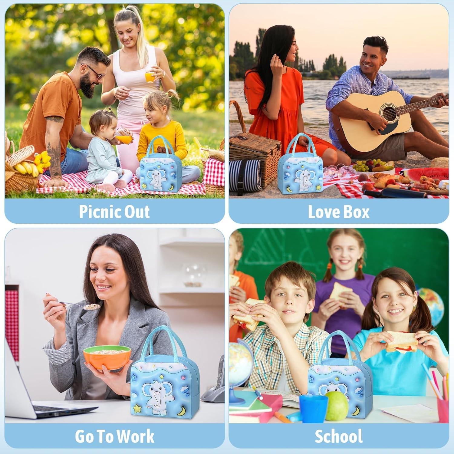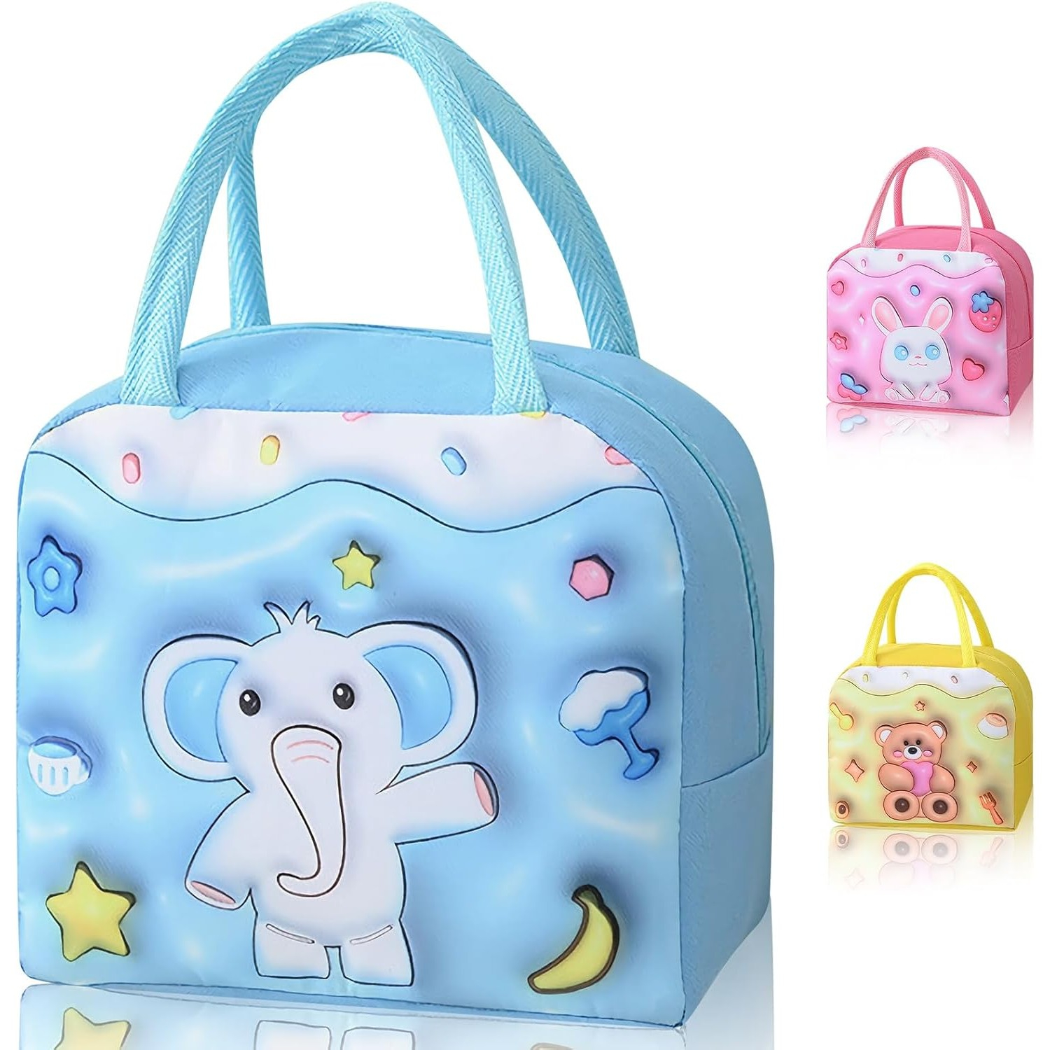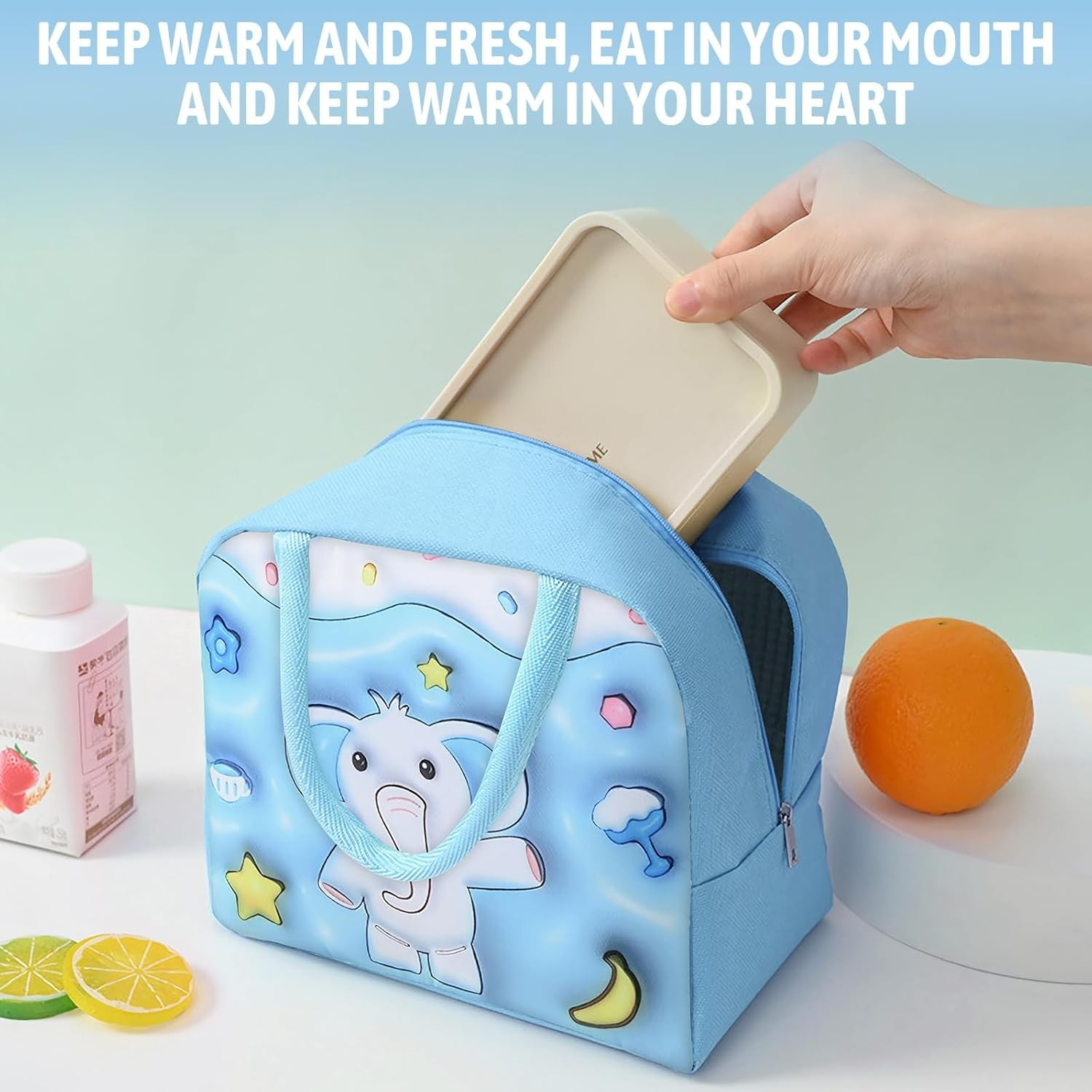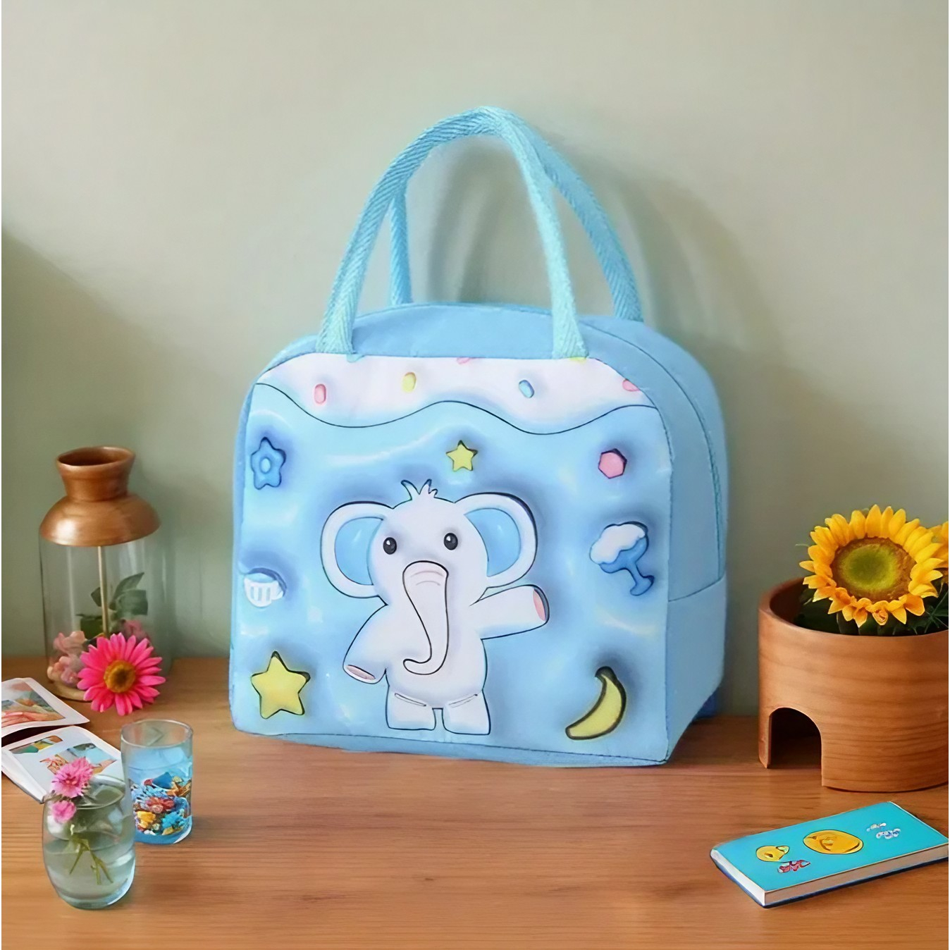Geantă Frigorifică, , cu Desene Animate 3D, Portabilă pentru Copii, de Prânz, din Pânză Oxford, 23x13x19 cm, Model Elefantel, Albastru