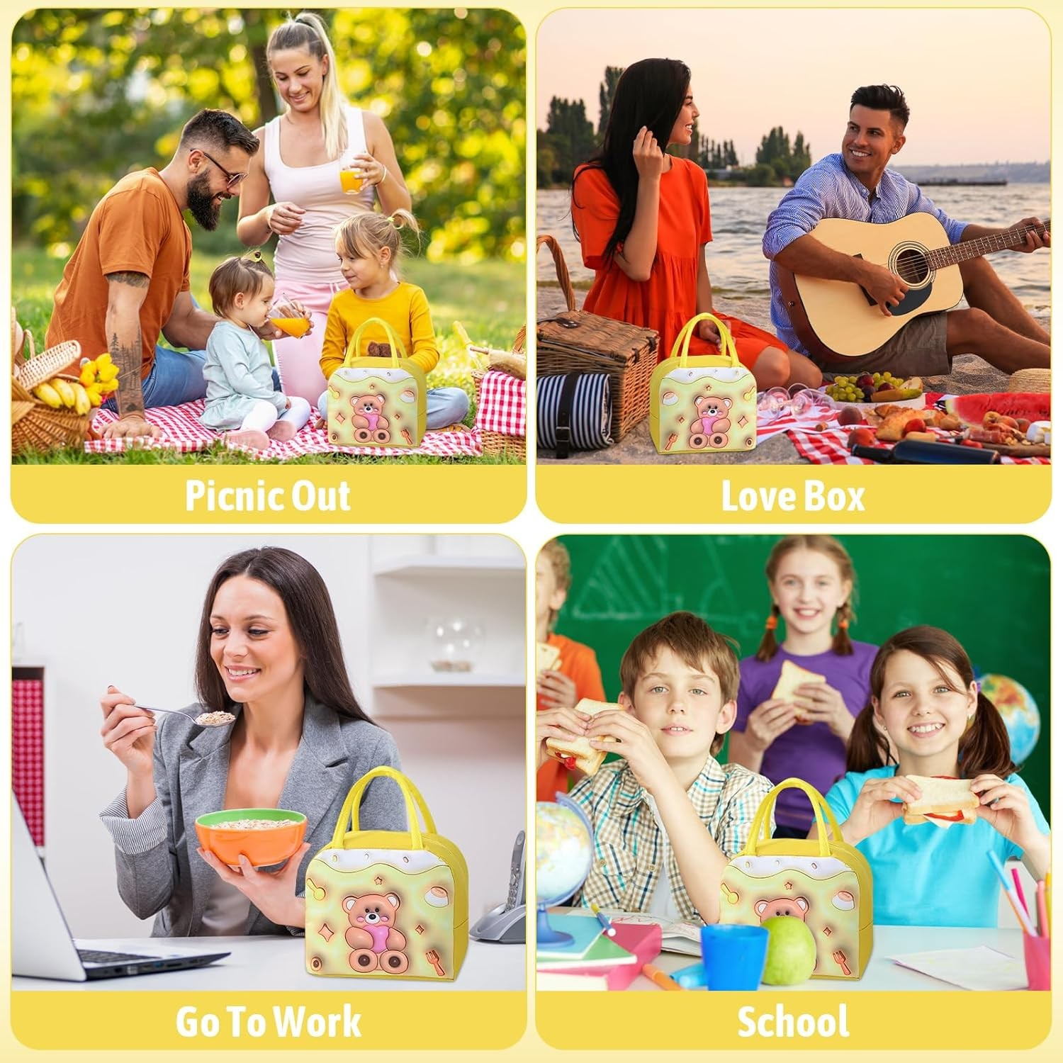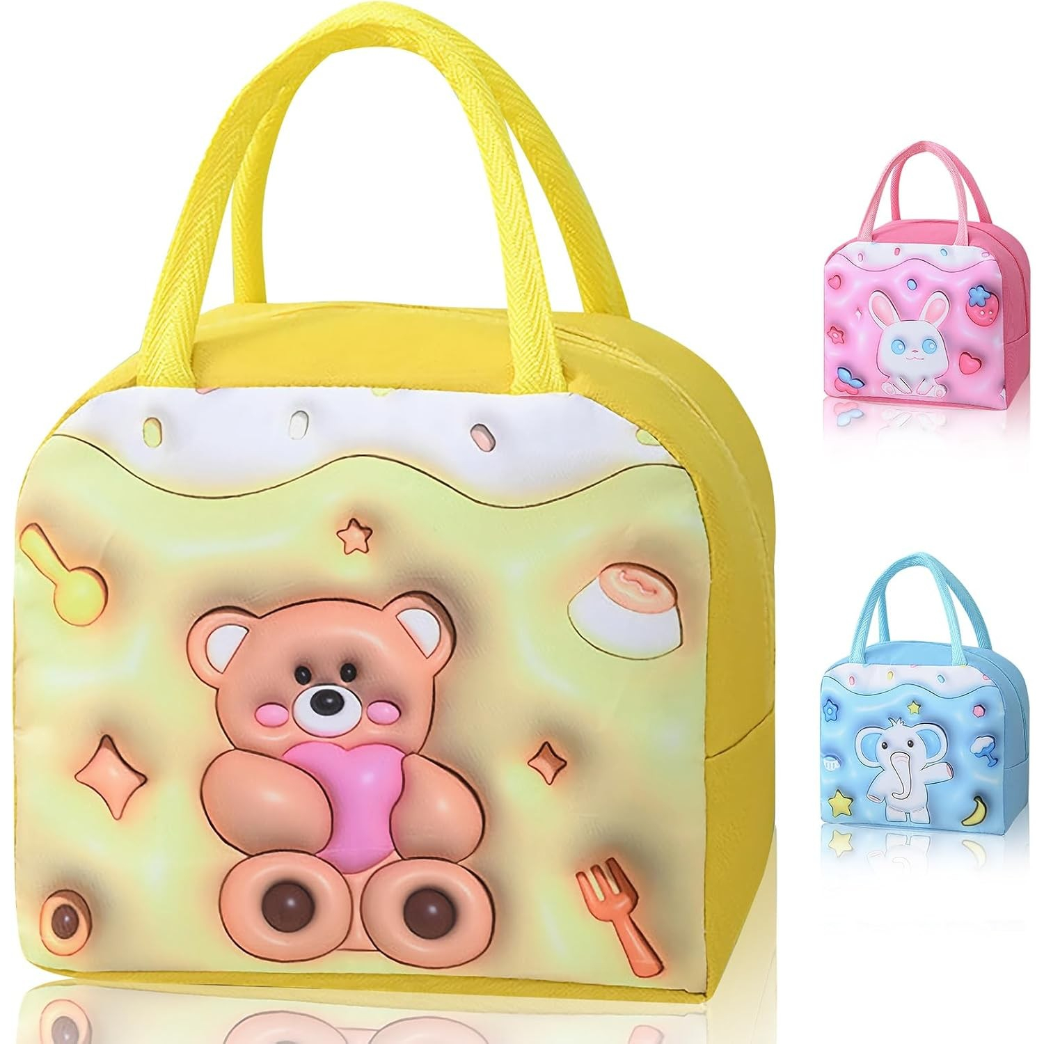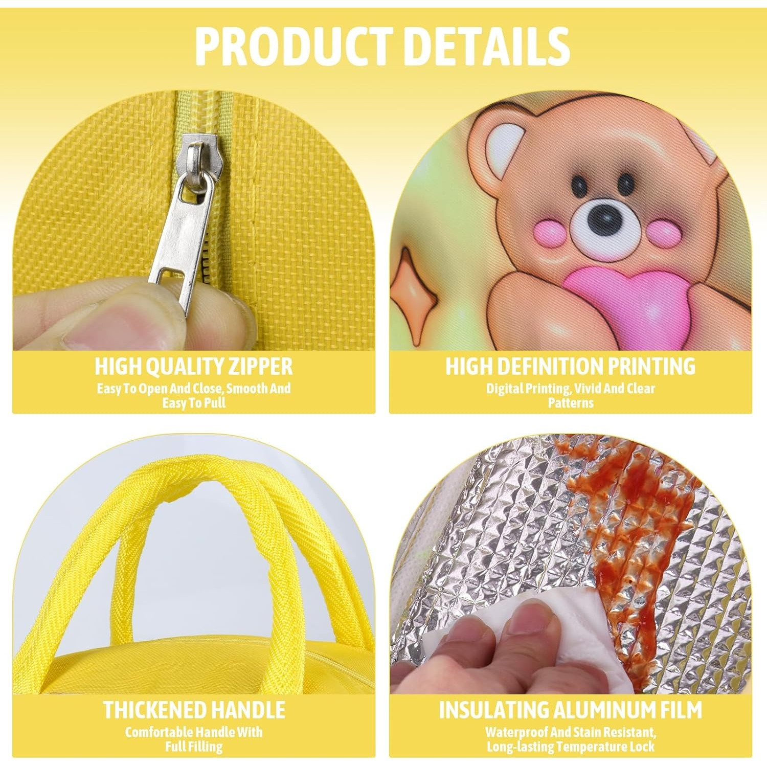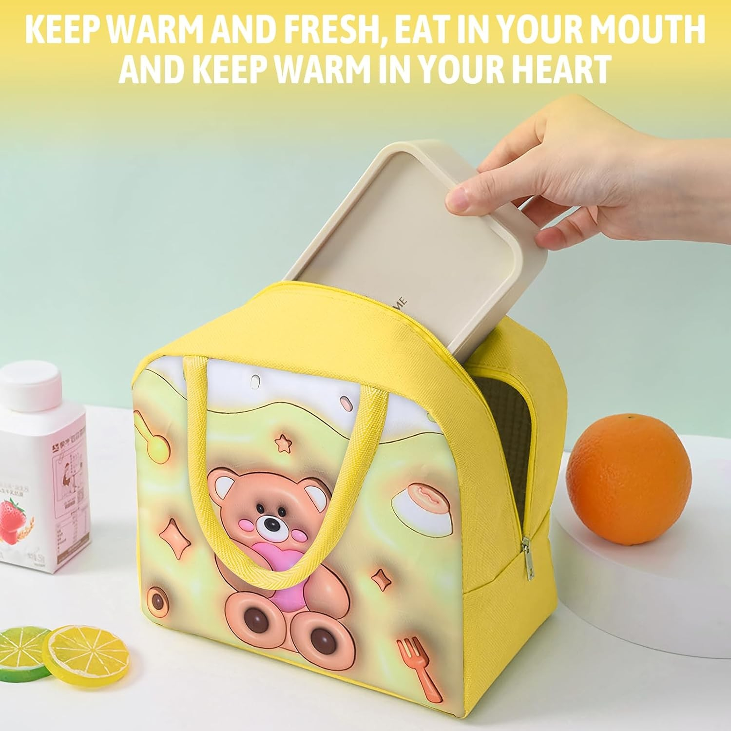 Geantă Frigorifică, , cu Desene Animate 3D, Portabilă pentru Copii, de Prânz, din Pânză Oxford, 23x13x19 cm, Model Ursulet, Galben