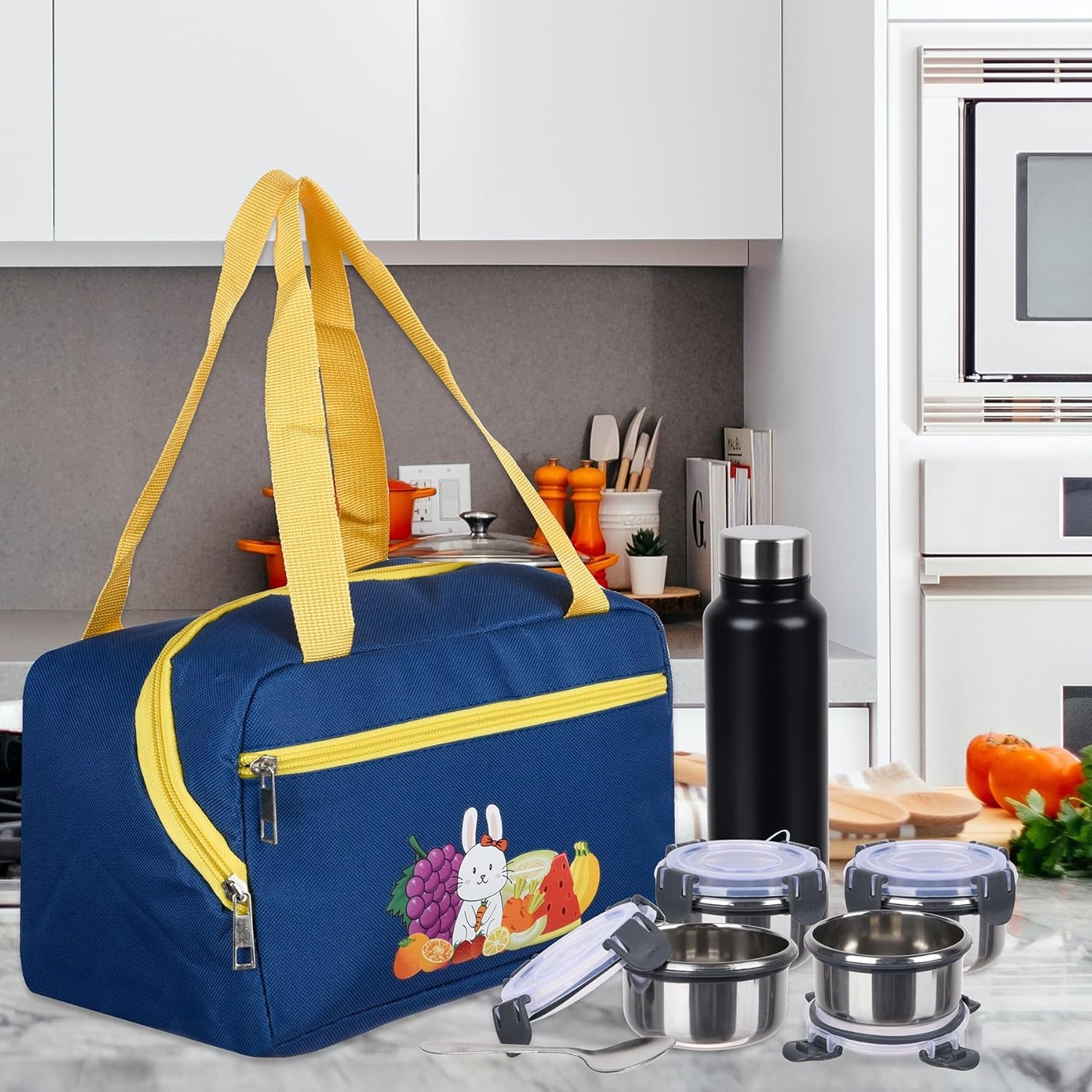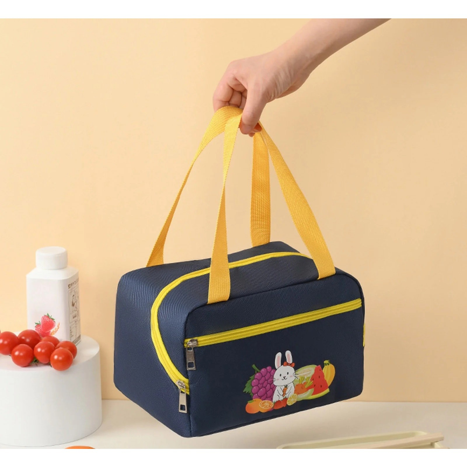 Geantă Termo-Izolantă Flippy, cu Compartimente pentru Telefon și Tacâmuri, 30 x 21 x 20 cm, Design Iepuraș, Albastru