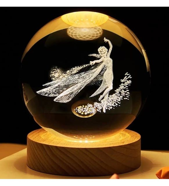 Lasa magia si eleganta sa prinda viata in spatiul tau cu aceasta delicata lampa de veghe 3D cu zana dansatoare, sculptata cu finete in interiorul unui glob de cristal optic de 6cm. Designul graţios si detaliile atent lucrate transforma aceasta piesa intr-un decor plin de farmec si mister.Lumina calda ambientala creeaza o atmosfera relaxanta si visatoare, perfecta pentru dormitor, birou sau orice colt special al casei tale. Baza din lemn natural completeaza armonios aspectul elegant si natural al lampii, adaugand o nota de caldura si rafinament.Aceasta lampa este un cadou minunat pentru cei care apreciaza frumusetea basmelor, simbolismul zanelor si dorinta de evadare intr-o lume magica. Un decor mic, dar cu putere de a transforma fiecare seara intr-un moment de vis si inspiratie.