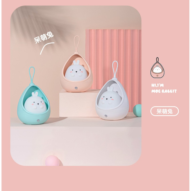 Lampa de veghe portabila cu 2 moduri de functionare , silicon non-toxic, reincarcabila USB, senzor miscare, alb, iepuras