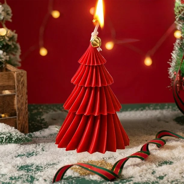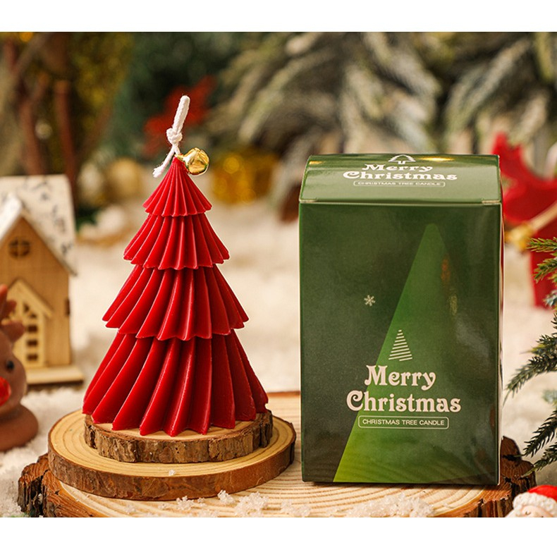 Creeaza un decor de poveste in perioada sarbatorilor cu aceasta lumanare decorativa in forma de brad de Craciun. Cu un design elegant in straturi, de culoare verde intens, si accesorizata cu un clopotel auriu, aceasta lumanare este perfecta pentru mese festive, cadouri sau aranjamente de iarna.