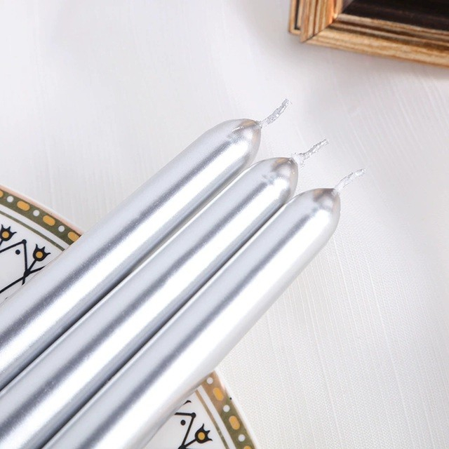 Informatii utile: Culoare:Argintiu, Inaltime:25 cm, Tip produs:Lumanare, Material:Parafina, Cantitate pachet:1, Parfum:Fara parfum, Lungime:2.2 cm, Diametru:2.2 cm, Sarbatoare:Craciun Ziua indragostitilor Paste, Timp ardere:7.5 h, Greutate:50 g