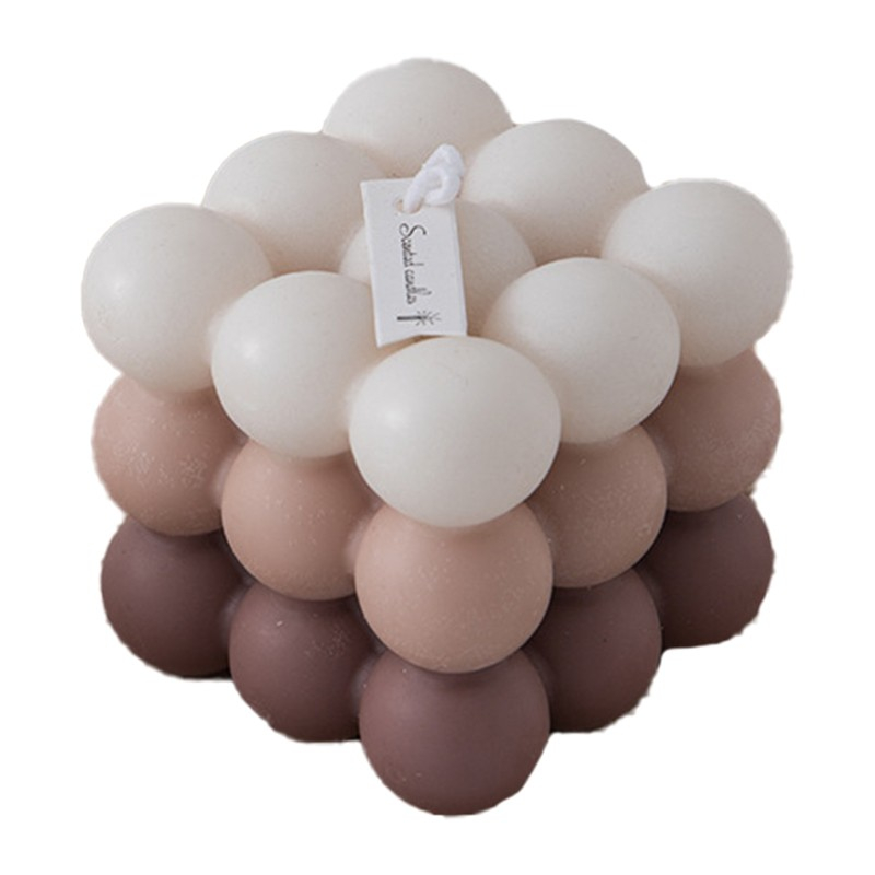 Lumanare Parfumata, Flippy, Model Cub, Gradient in 3 Culori Pale, 6x6x6 cm, Aroma de Busuioc, Maro