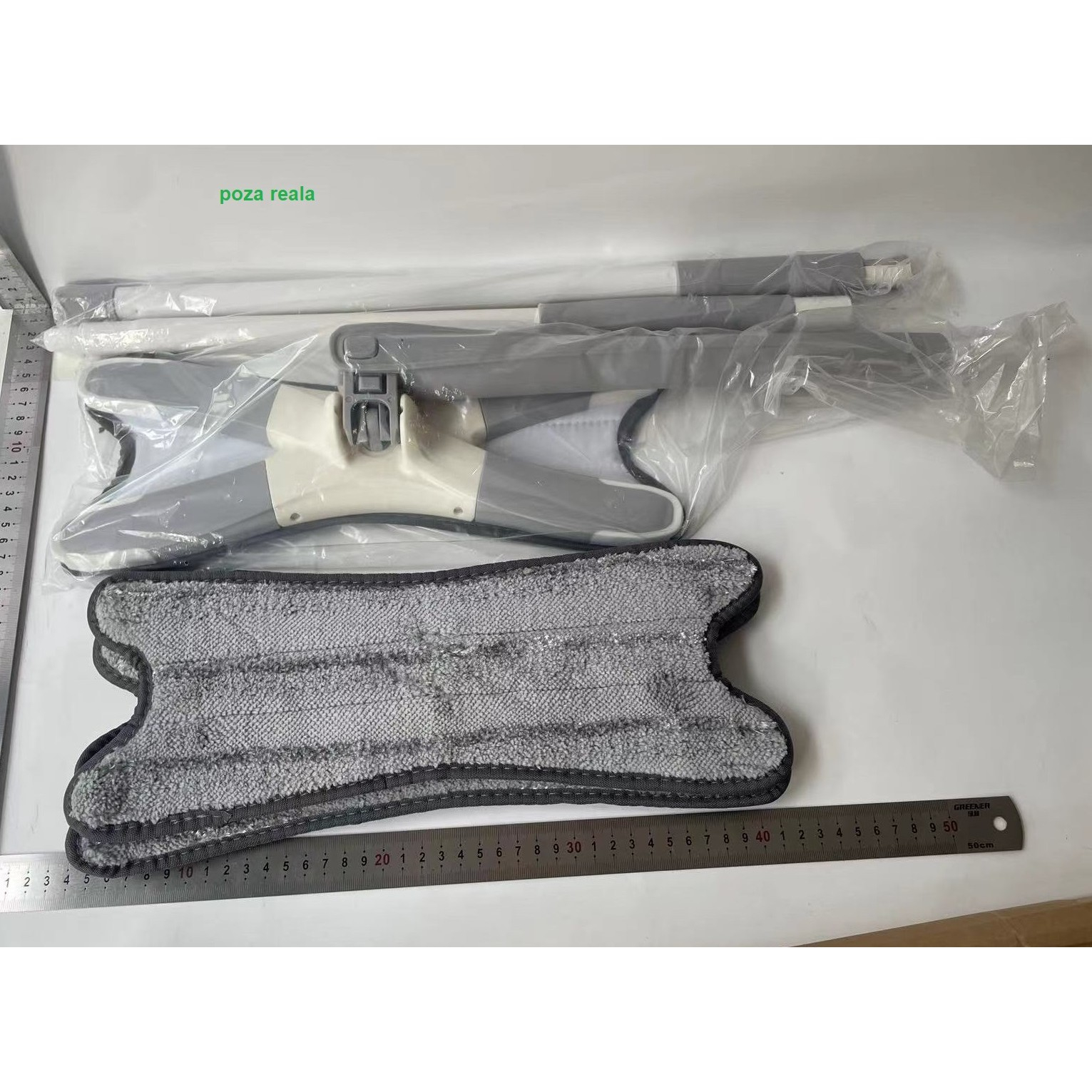 Informatii utile: Material:ABS, Utilizare:Interior, Tip produs:Mop, Material mop:Microfibra, Tip mop:Plat, Maner extensibil:Da, Tip peri:Microfibra, Functii:Rotire 360°, Culoare:alb gri, Continut pachet:Mop Plat, , cu Sistem de Stoarcere, 4 Lavete Incluse, Lungime Telescopica 140 cm, Argintiu