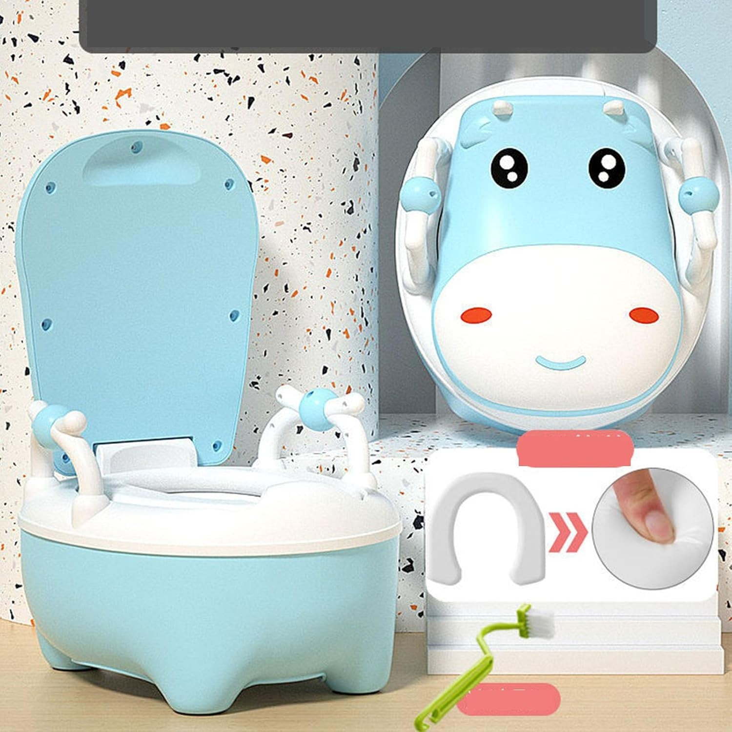 Facilitează tranziția copilului tău către utilizarea toaletei cu Olița Flippy, creată pentru a oferi siguranță, confort și o experiență prietenoasă. Cu un design adorabil în formă de văcuță și funcții practice, această oliță este partenerul ideal pentru părinți și copii.