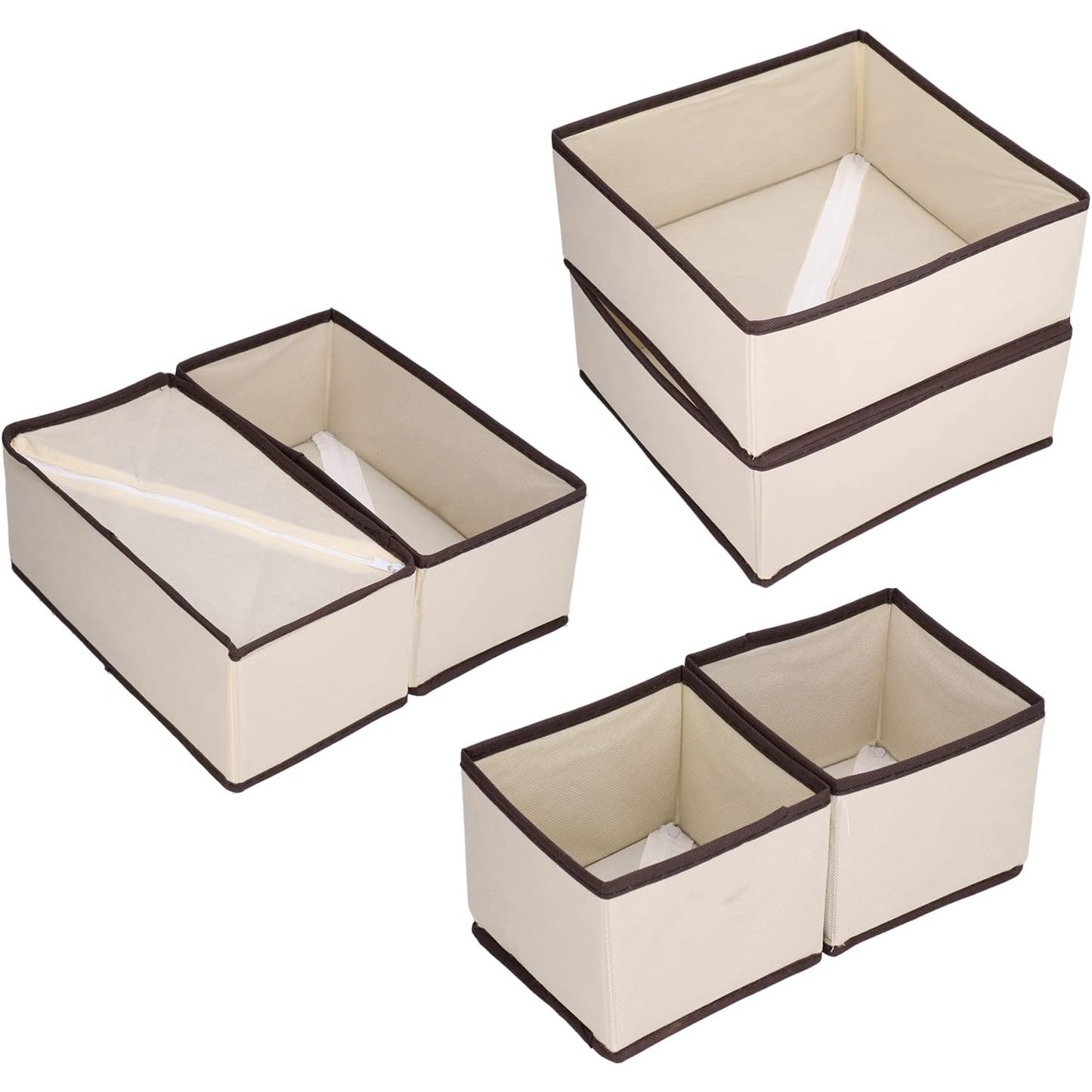 Organizator pentru Sertar, , 3 Marimi, pentru Lenjerie, Tricouri, Sosete, 6 Piese, Pliabil, Stivuibil, din Tesatura, Alb/Maro