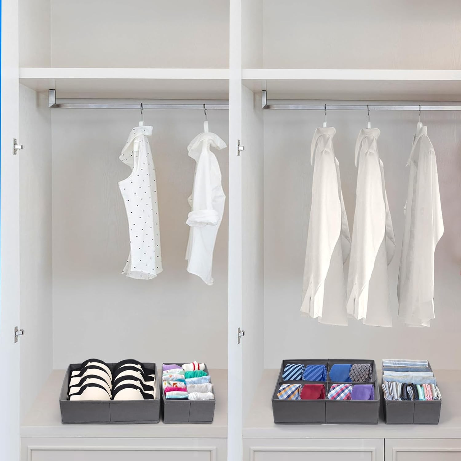 Organizator pentru Sertar, , 3 Marimi, pentru Lenjerie, Tricouri, Sosete, 6 Piese, Pliabil, Stivuibil, din Tesatura, Gri