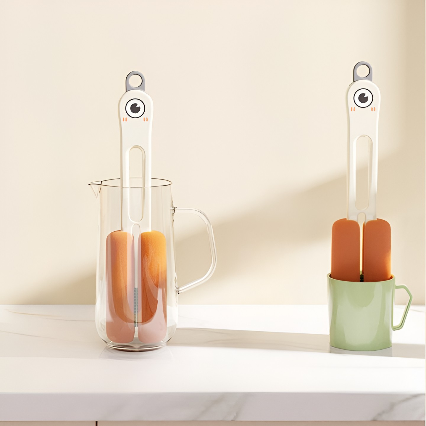 Peria pentru pahare adoptă un design special, echipată cu un burete moale ce nu va zgâria și un mâner lung durabil, care poate curăța cu ușurință întreaga suprafață interioară a paharelor sau sticlelor.